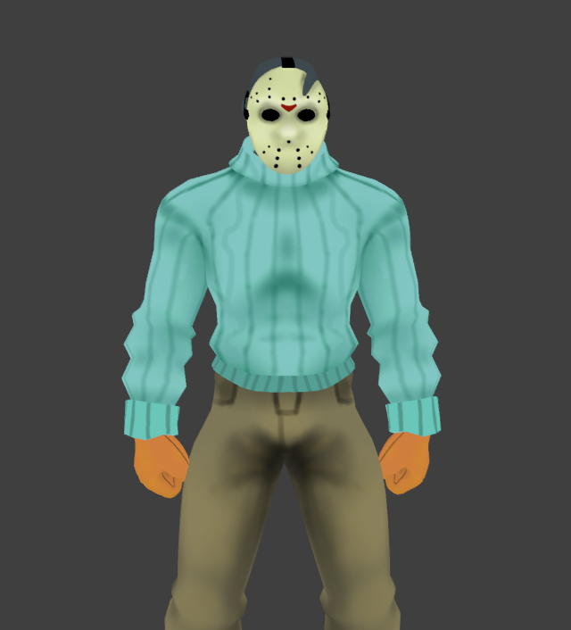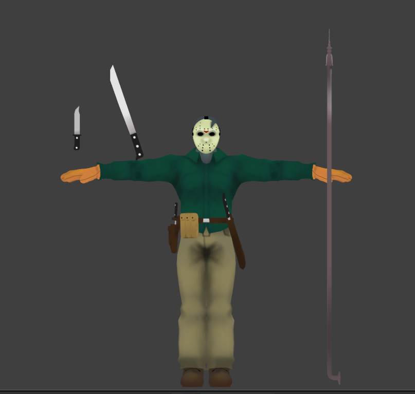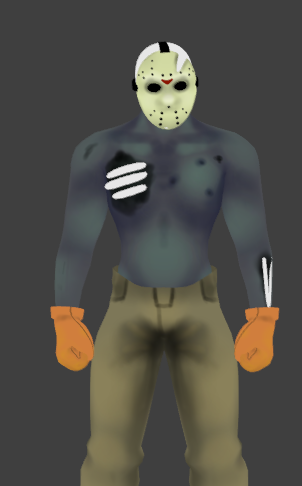 - Comes with material swaps, a purple and blue look based on the Nes version of Jason from the old game, and a bloody/damaged toggle.