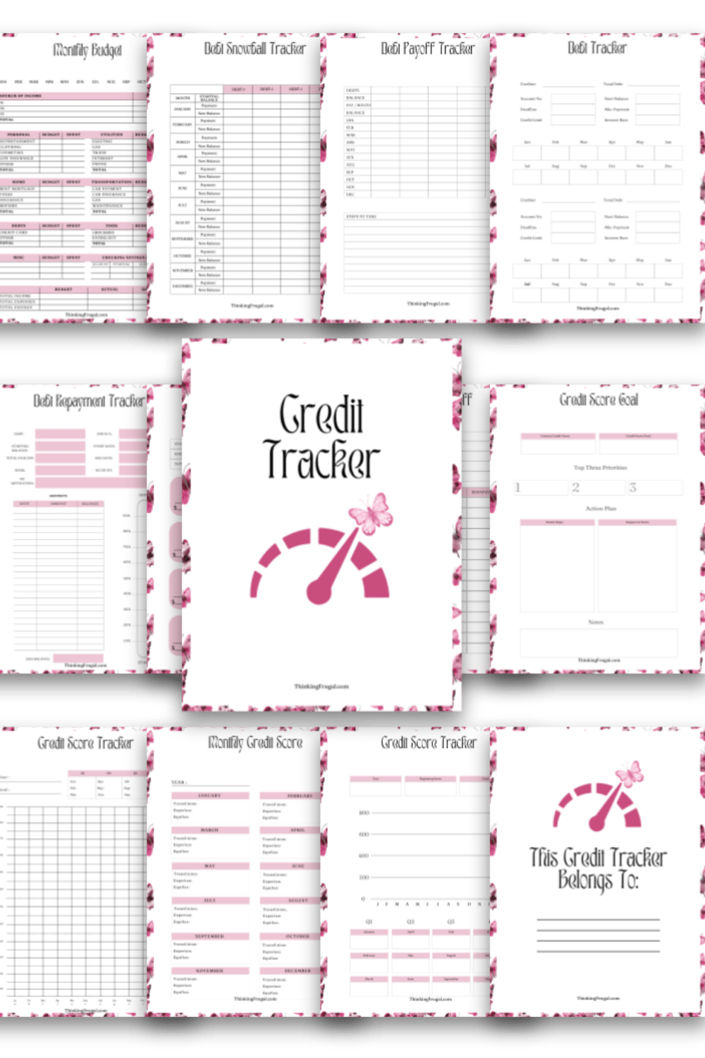 - This bundle includes 13 total pages. Includes cover page, belongs to page, credit score tracker, monthly credit score, grid credit score tracker, credit score goal, credit card payoff tracker, credit card tracker, debt repayment tracker, debt tracker, debt payoff tracker, debt snowball tracker, and simple monthly budget worksheet.