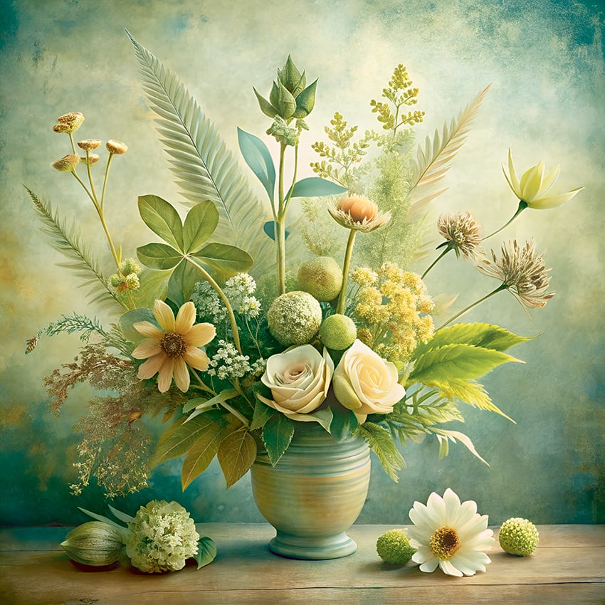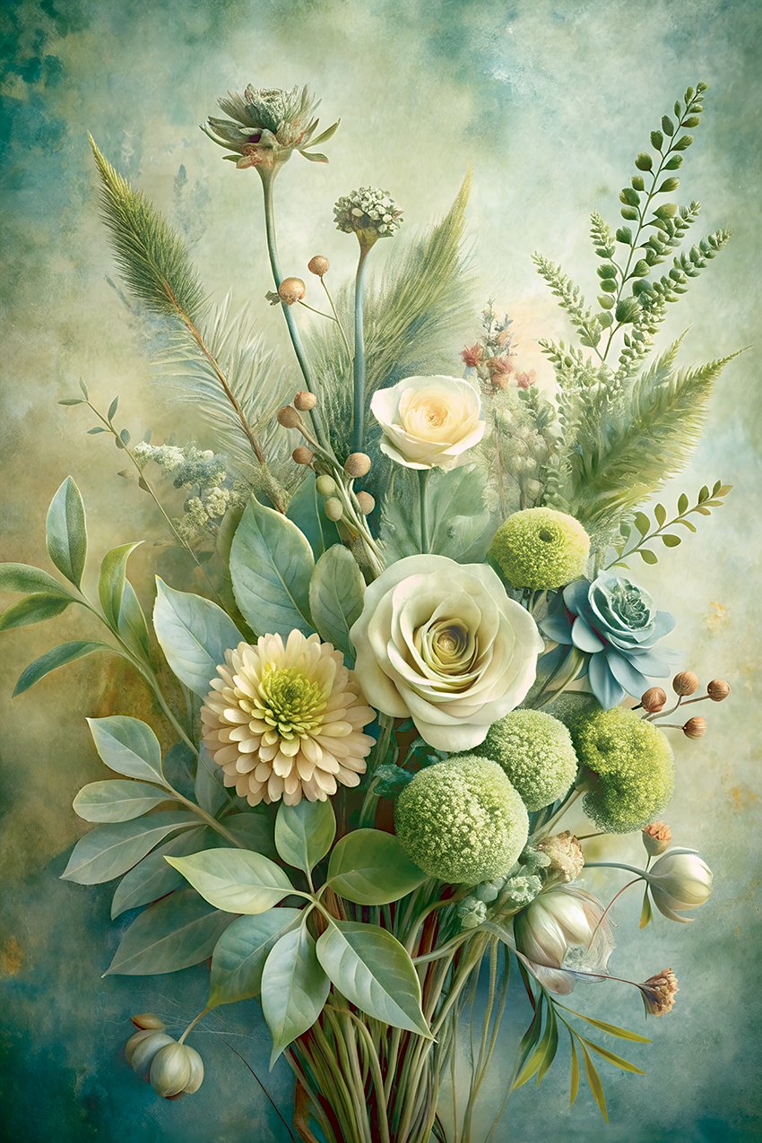 Elevate your space with this exclusive set of 12 high-resolution botanical watercolor paintings. Each artwork features a unique stylized floral composition with soft green tones and earthy shades, painted in a calming watercolor style on a textured paper effect. This cohesive collection is perfect for gallery walls, wellness spaces, modern interiors, or digital decoration. The detailed botanical elements and natural palette bring peace, elegance, and harmony to any environment. Ideal for high-quality printing or digital use, these artworks offer both versatility and aesthetic impact.