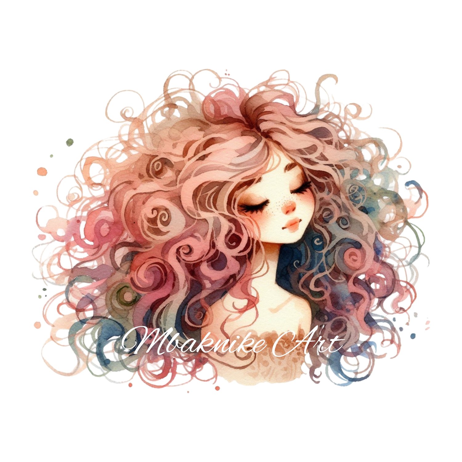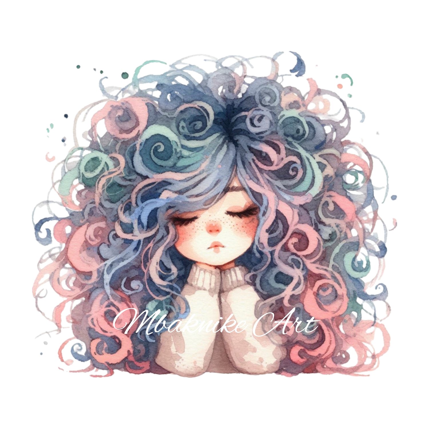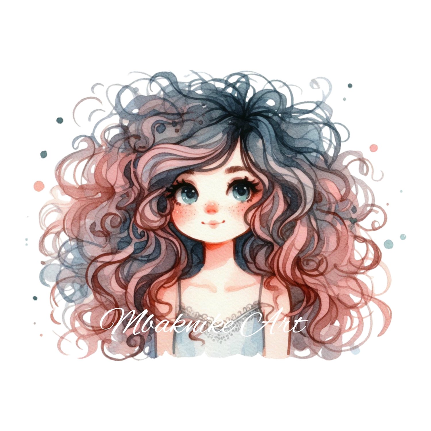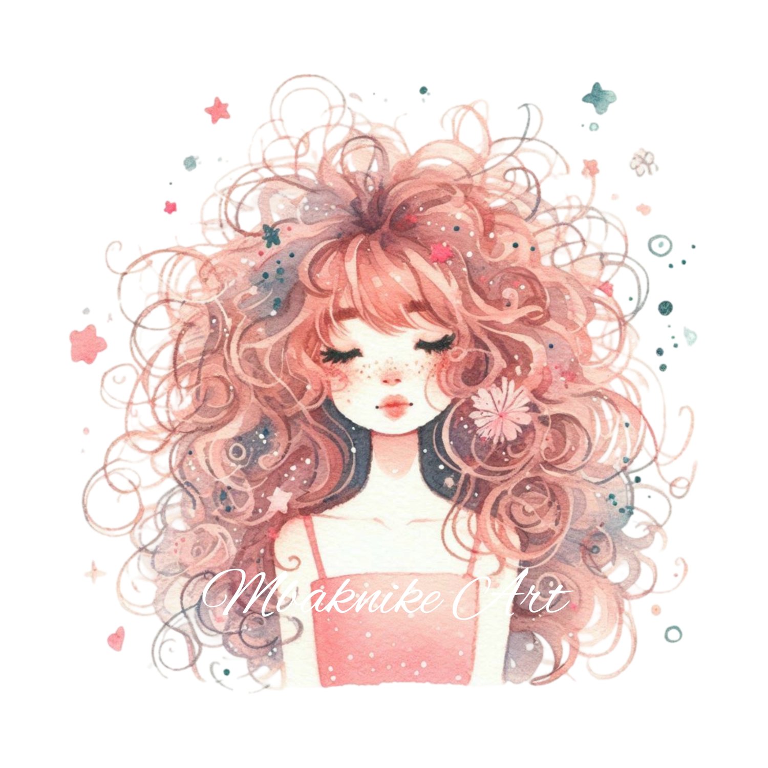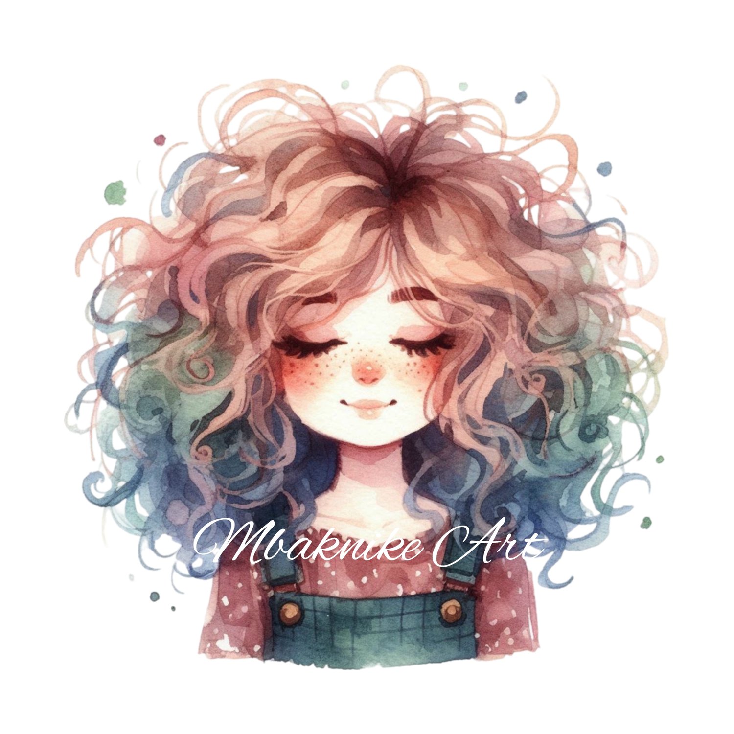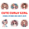 Transform your creative projects with our "Cute Curly Girl Clipart" collection! This digital pack includes 20 unique and whimsical images, each in JPG format at a high resolution of 300 dpi and 4096 x 4096 px.