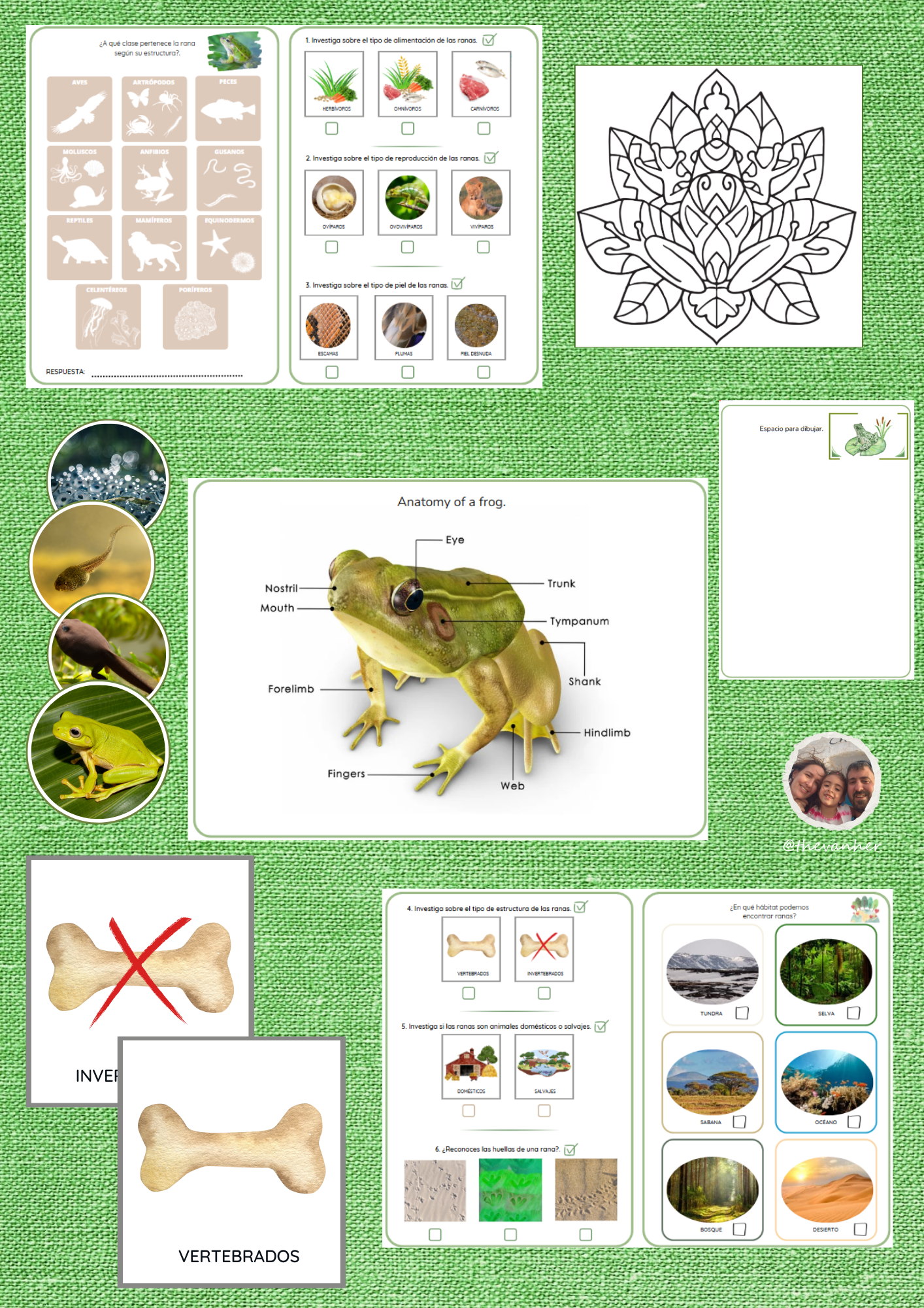 – Ciclo de vida de la rana auto corregible. Con actividades de lectura y escritura