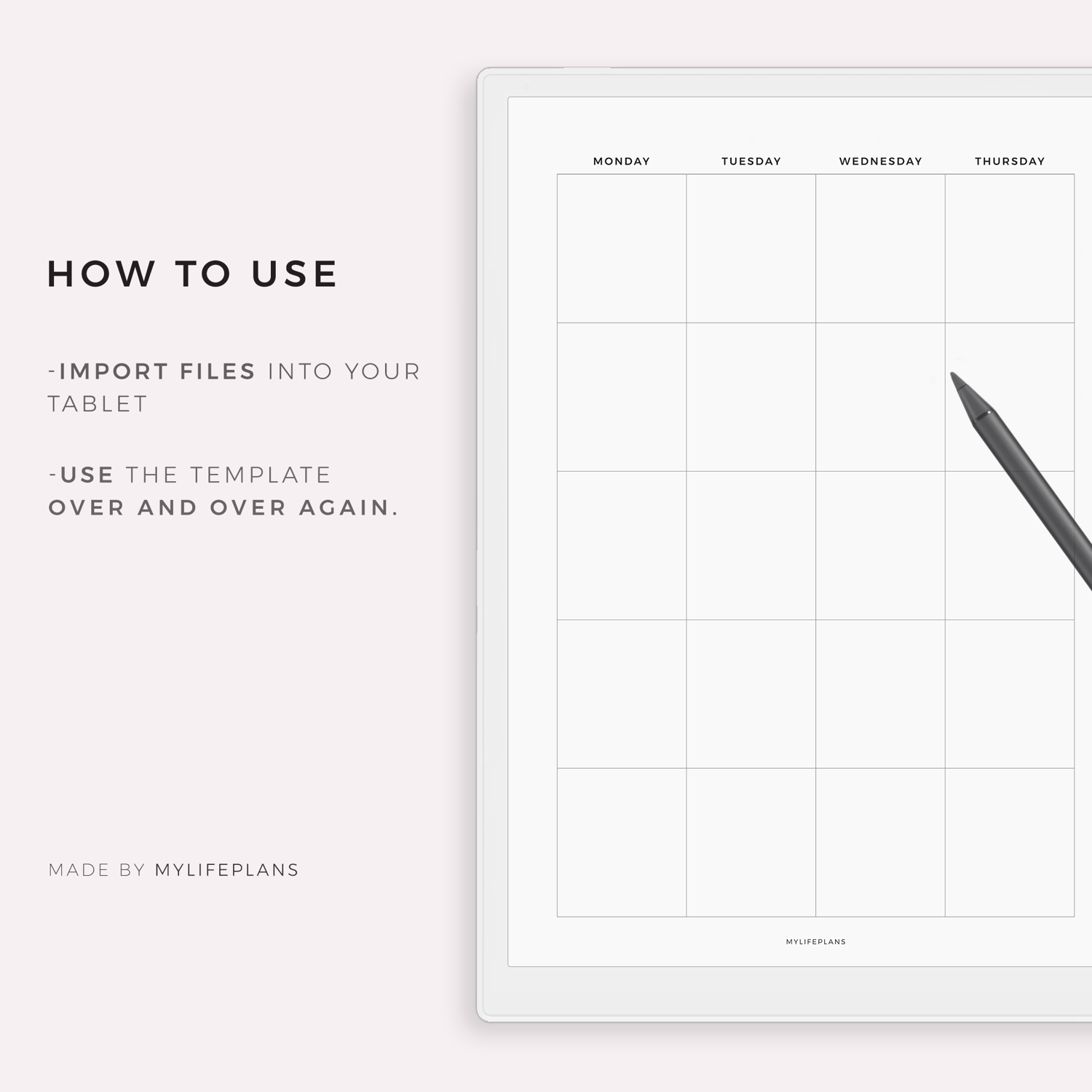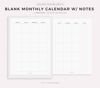 Blank Monthly Calendar with Notes, Compatible with Remarkable, Supernote, Kindle, Boox, Kobo