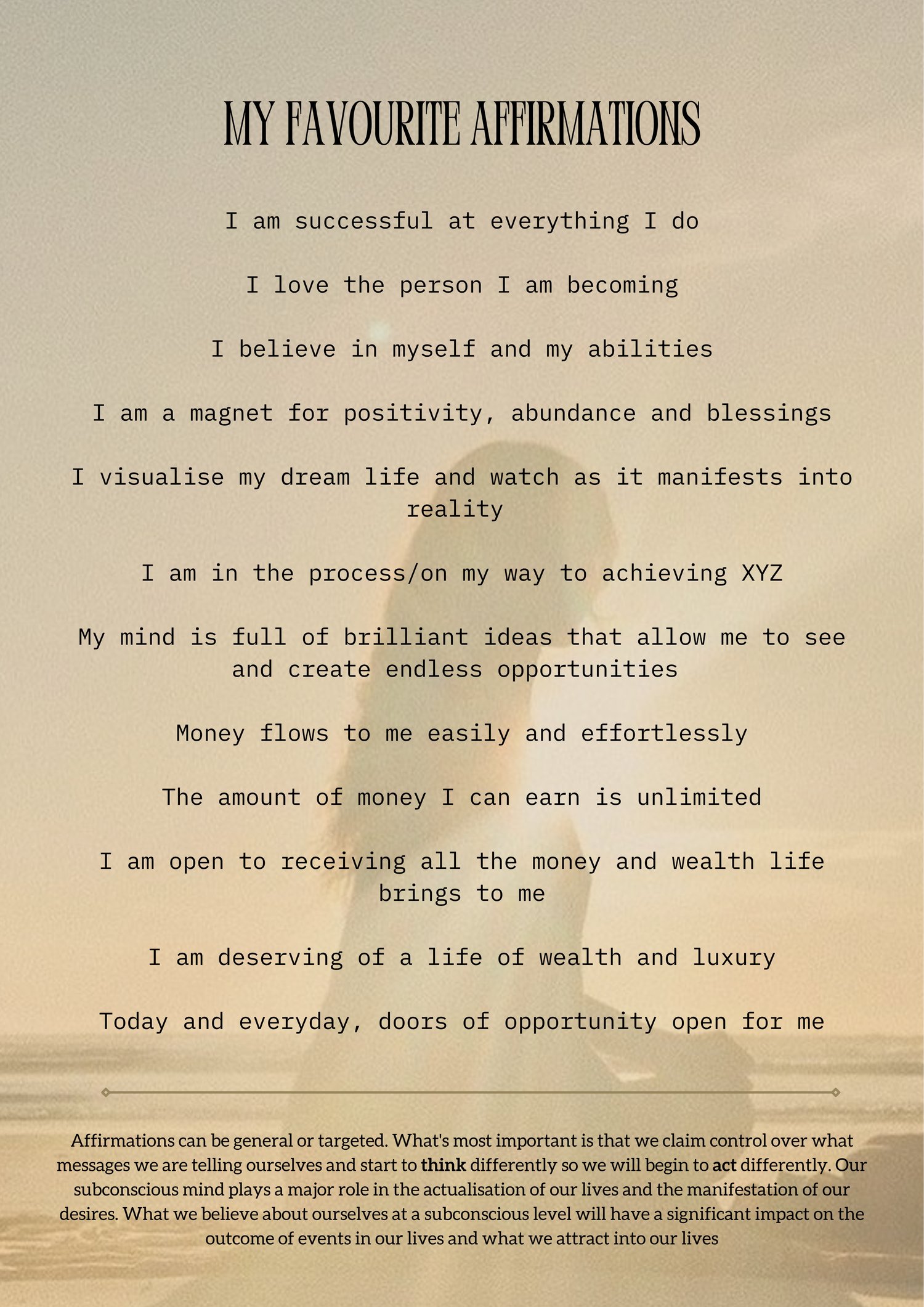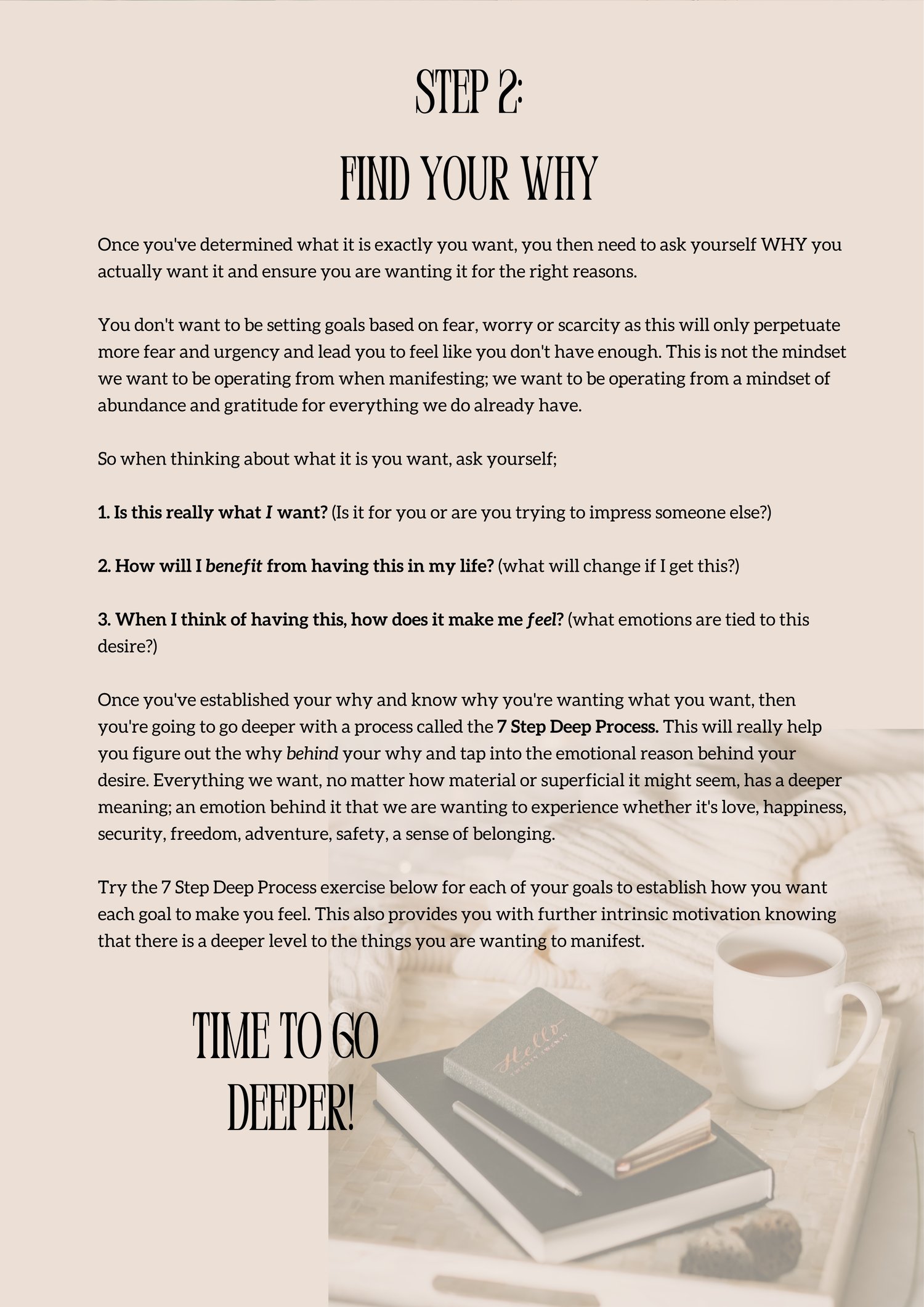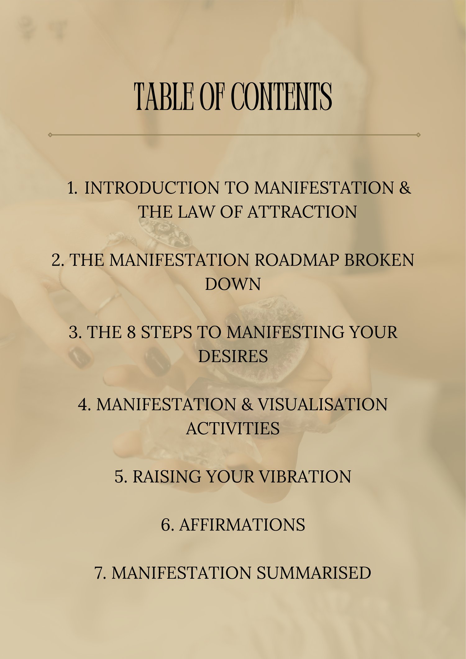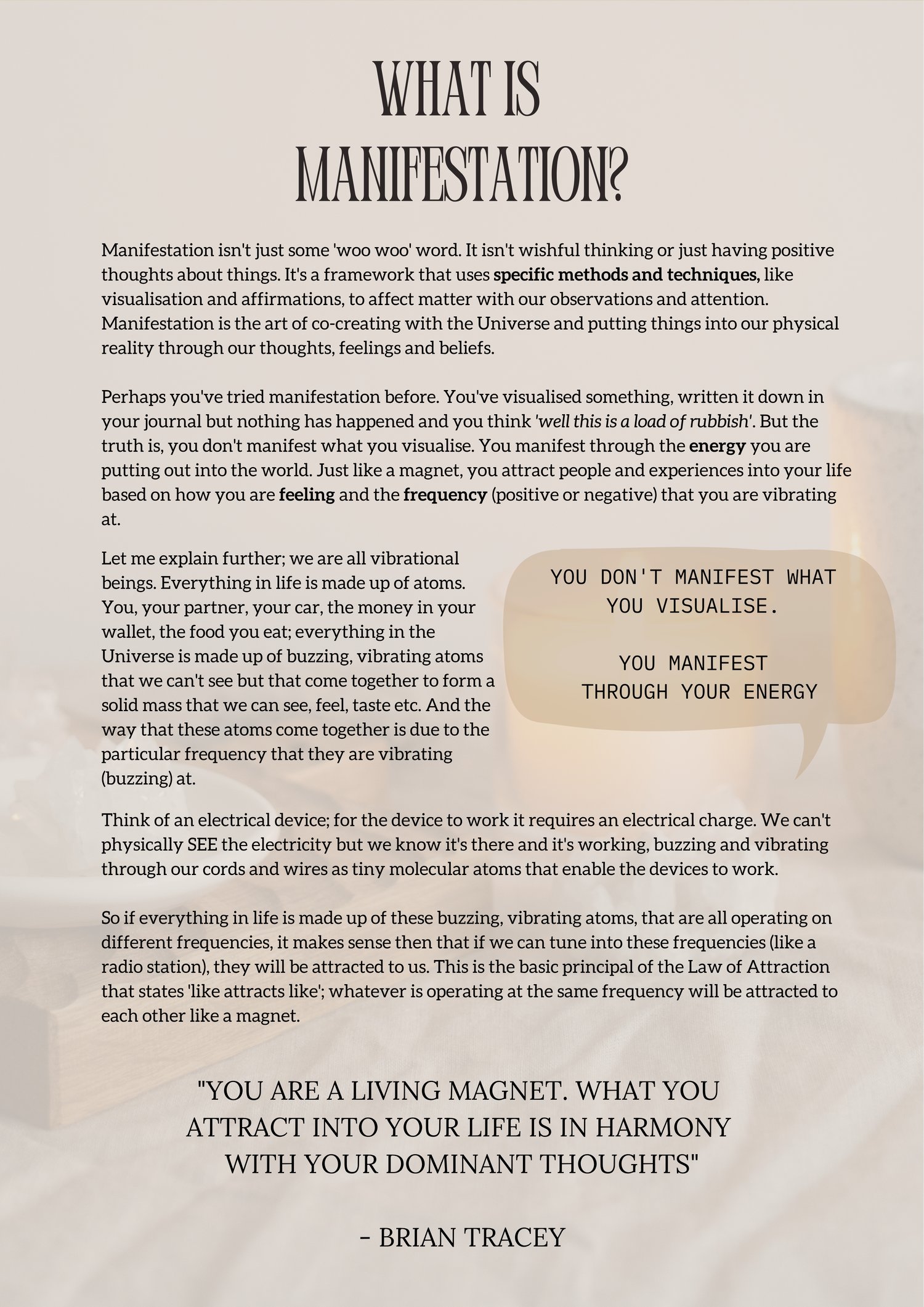 The Manifestation Roadmap is a beautiful guide to all things manifestation, the Law of Attraction & The Law of Vibration. It is the ultimate guide that will take you through what manifestation actually is, how it works, some of the science behind why it is so powerful, and my personal 8 step process & framework to manifesting and turning your dreams into reality.