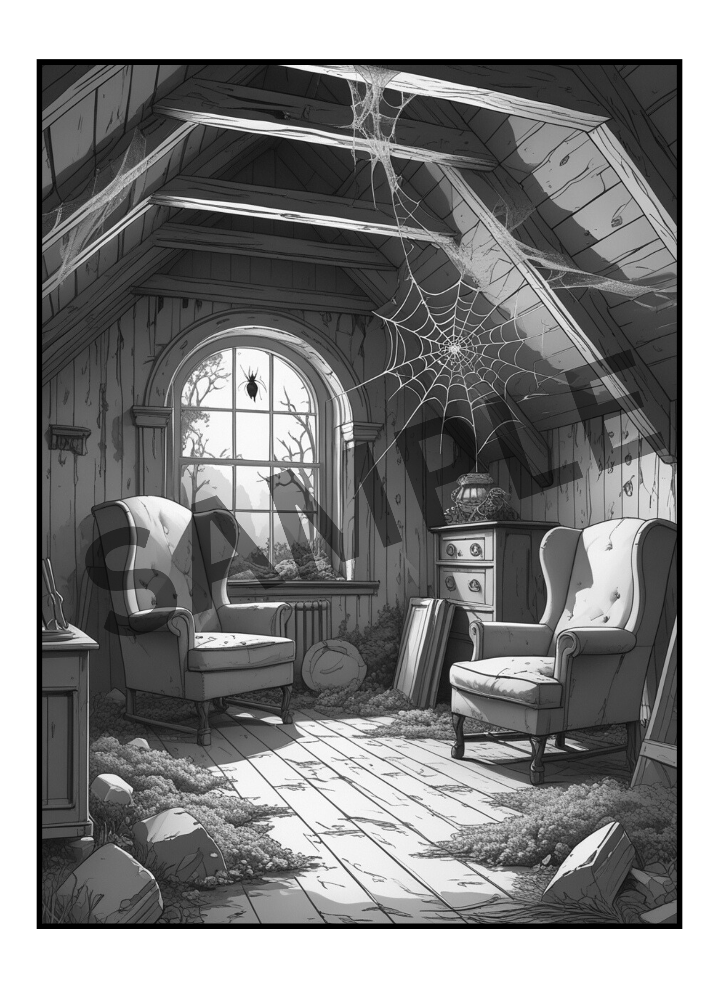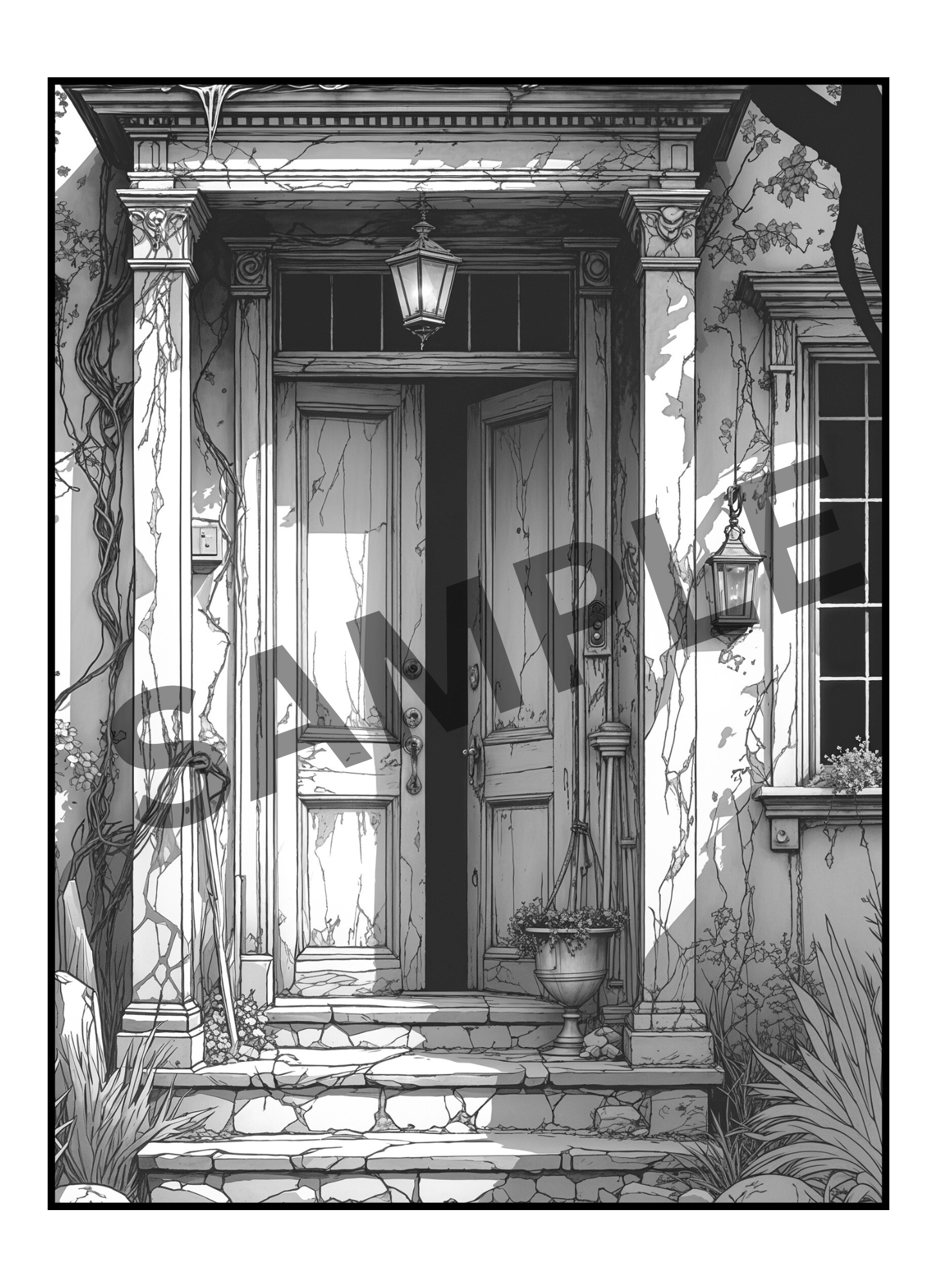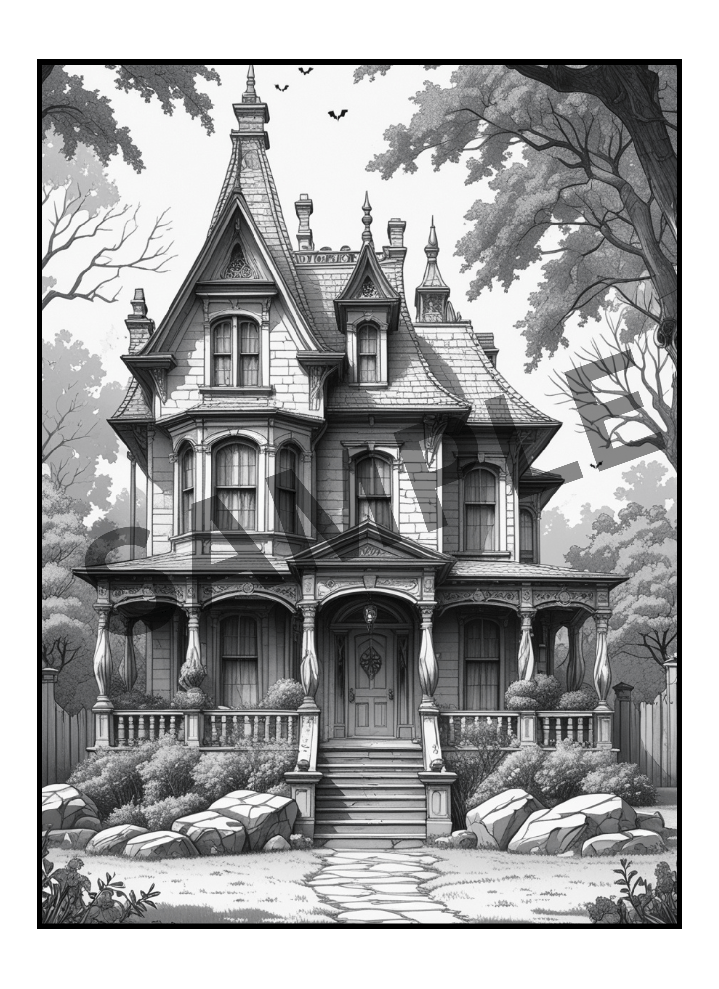 Haunted Houses Greyscale Coloring Pages (Digital Only!)
