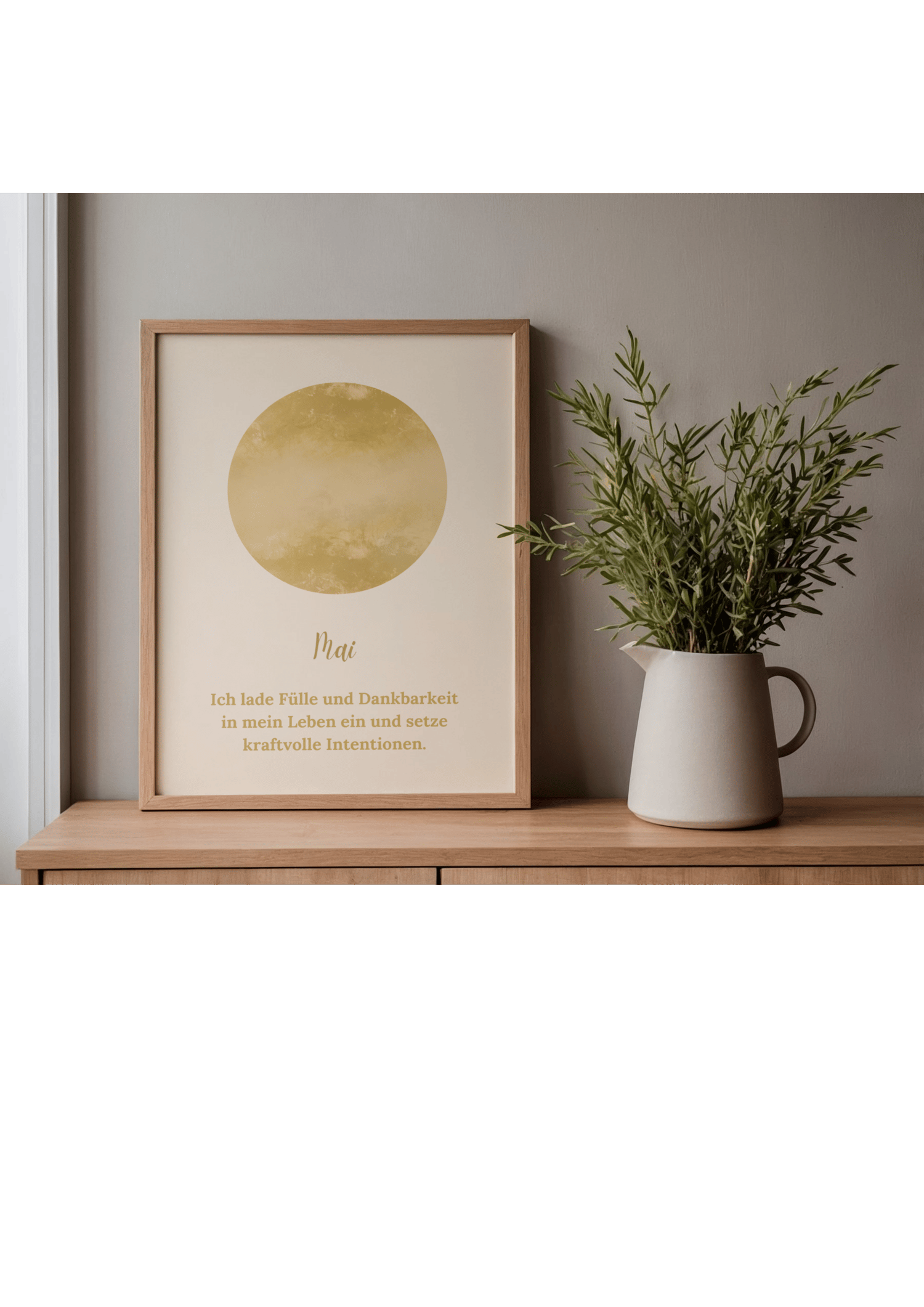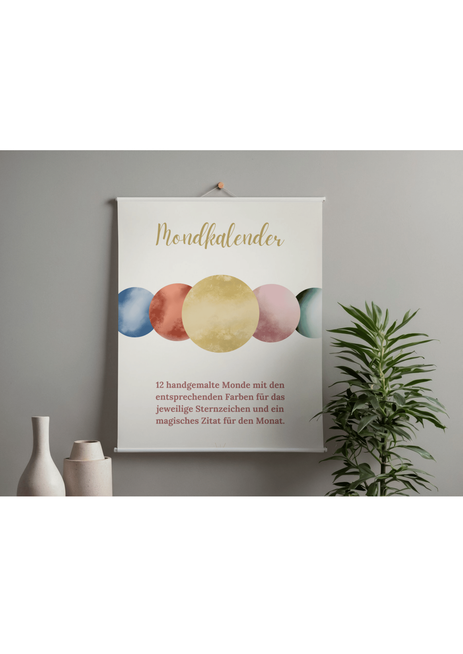 Moon & Soul ist ein undatierter Mondkalender als PDF zum Ausdrucken und Aufhängen – liebevoll, handgemalt gestaltet für deine persönliche Reise durch das Jahr.