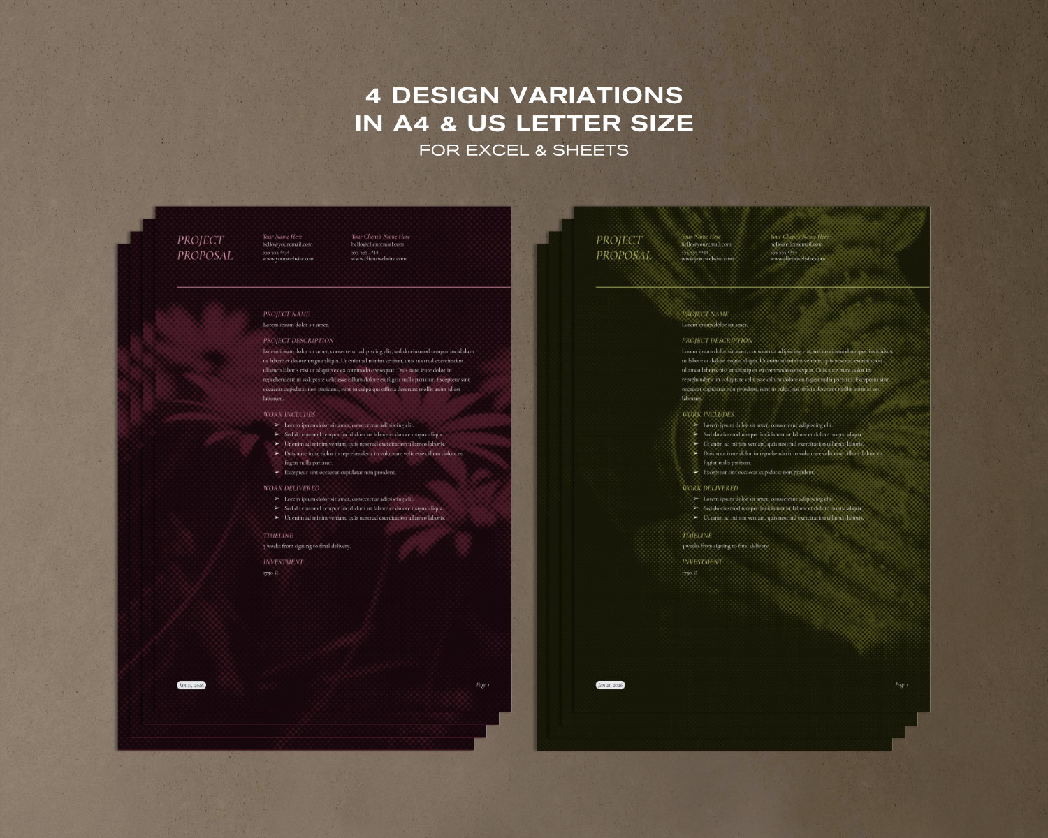 This editable project proposal template for Google Docs is designed for wellness professionals who want to present their services in a calm and professional way. The dark, minimal layout supports clear communication without visual noise.