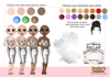 three different skin tones, three eye colours and 16 hair colours