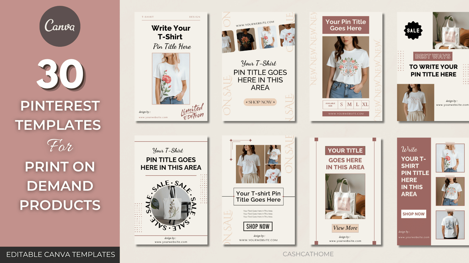 30 Pinterest Pin Templates for Print on Demand Shops | Fully Editable in Canva