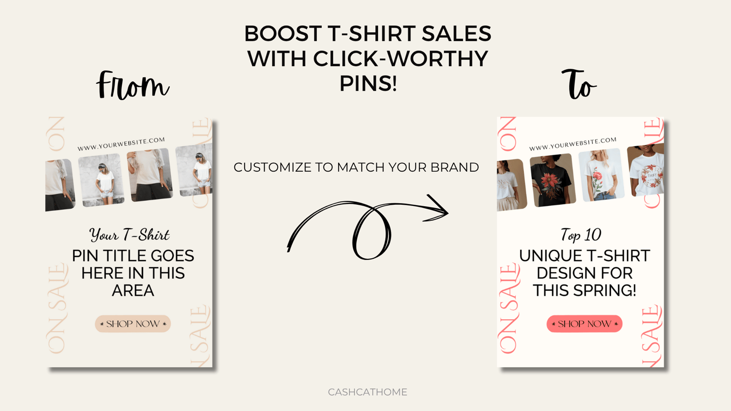 With these designs, you can attract clicks and drive free traffic straight to your shop from Pinterest — without the struggle of designing from scratch every week.
