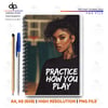 This notebook cover holds quiet focus and confident style. The DIY front cover features a portrait of a thoughtful, determined melanin woman in soft, warm light — a visual prompt to capture ideas, practice freewriting, or track progress. Compact at 6" x 8", it slips into a tote or backpack and quickly becomes the notebook you reach for when a clear thought needs holding.