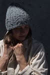 35 sts and 36 rnds = 4” / 10 cm in Main cable chart on larger needles, blocked, measured unstretched