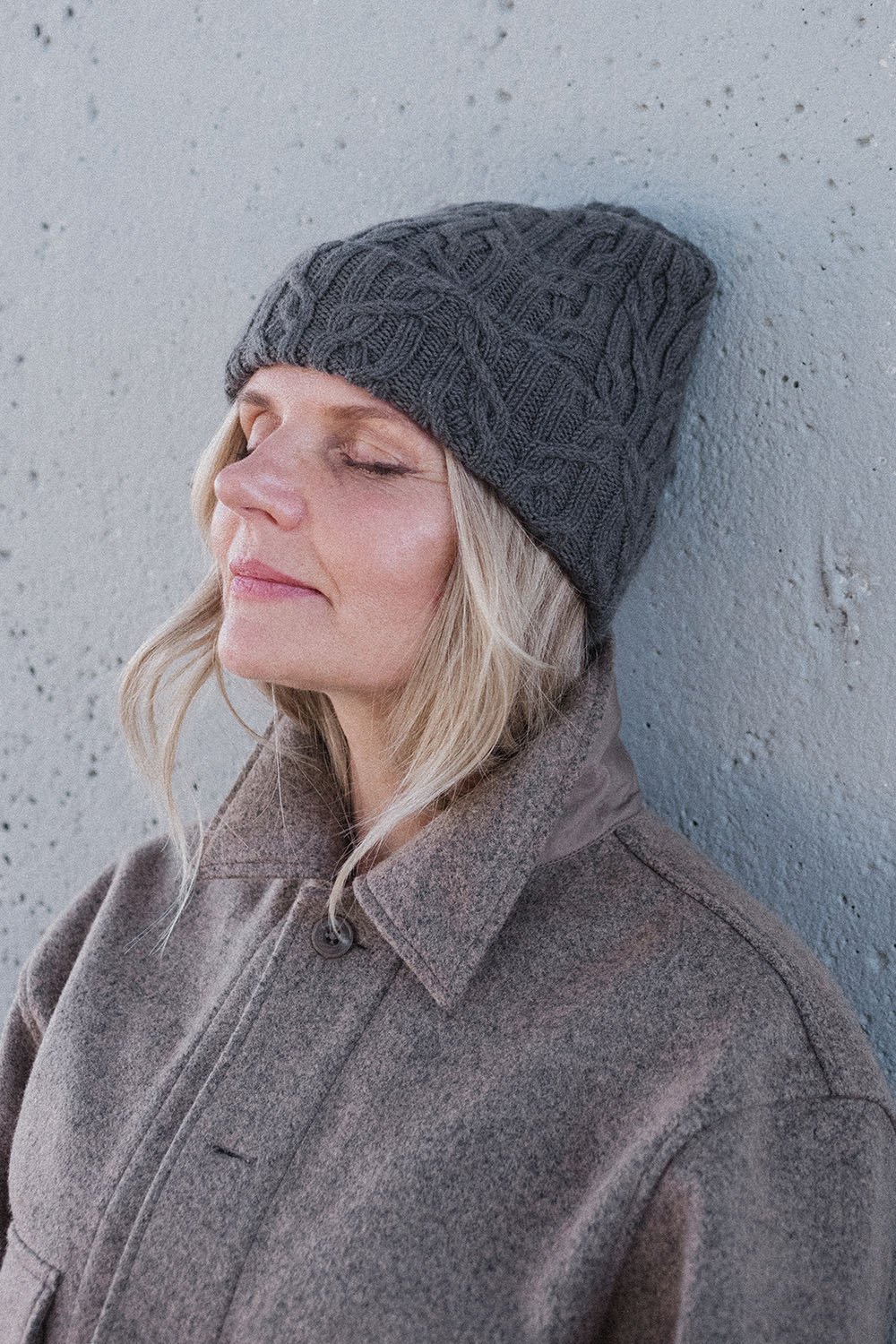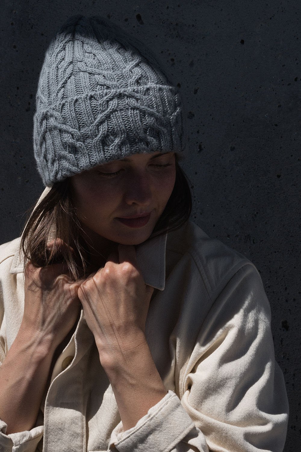 Though the fabric looks intricate, the rhythmic cable pattern quickly becomes intuitive—keeping you engaged without feeling overwhelming. Once you find your groove, the stitches practically dance off the needles. Worked in Woolfolk’s signature soft, springy yarn, Yalecrest is a project you’ll savor and a hat you’ll reach for all season long.