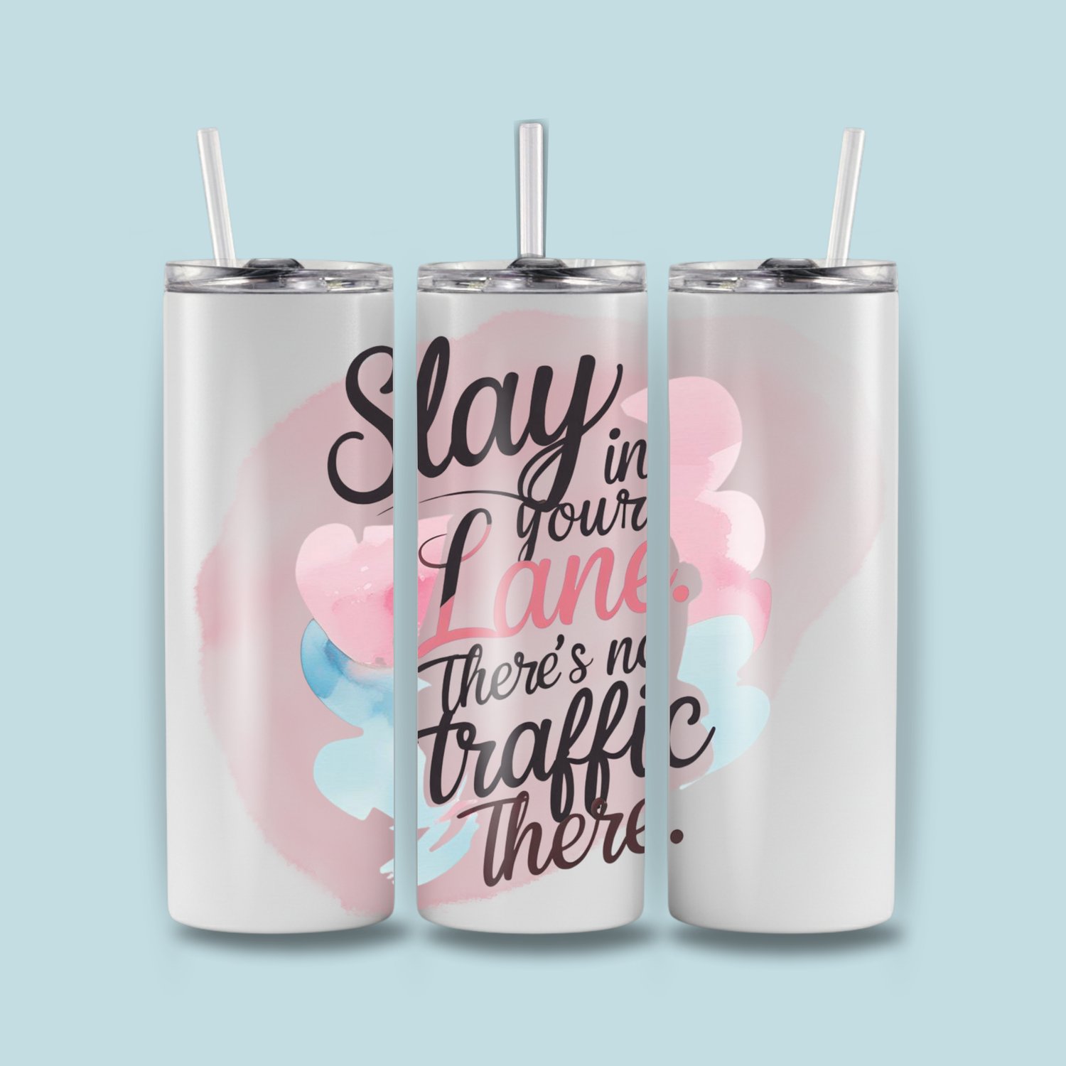 20 oz Motivational Skinny Tumbler – “Slay in Your Lane. There’s No Traffic There.”