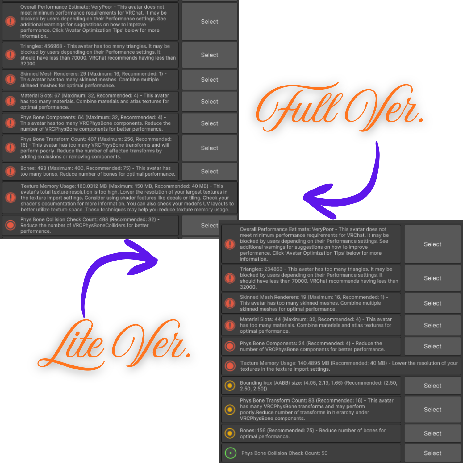 The LITE version was made with Quest users in mind, and will differ from the FULL version! It has been optimized and decimated for performance over presentation.