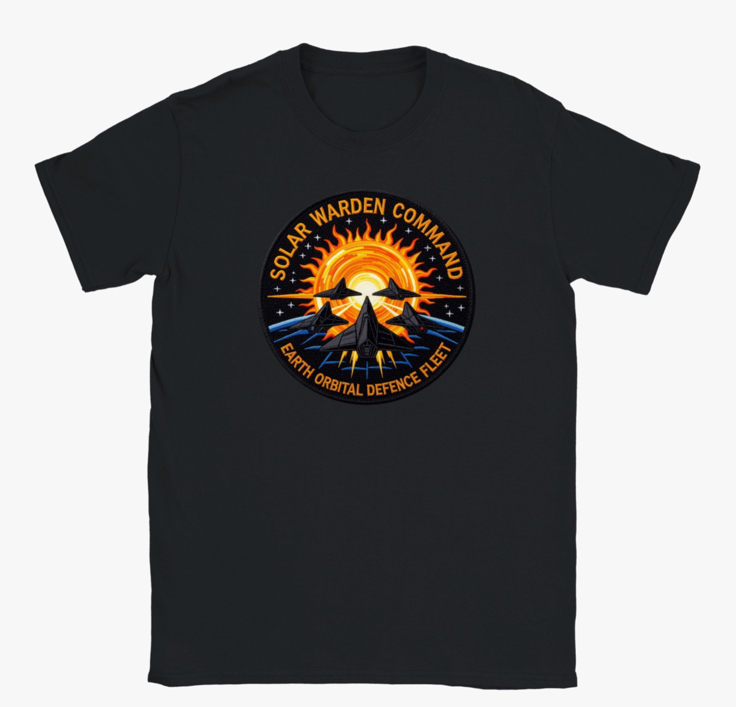 Step in to the ranks of the legendary “Solar Warden Command” with this bold, cosmic-inspired graphic tee. Featuring a striking emblem of futuristic spacecraft rising against a blazing solar backdrop, this design celebrates adventure, mystery, and humanity’s defence of Earth’s orbit.