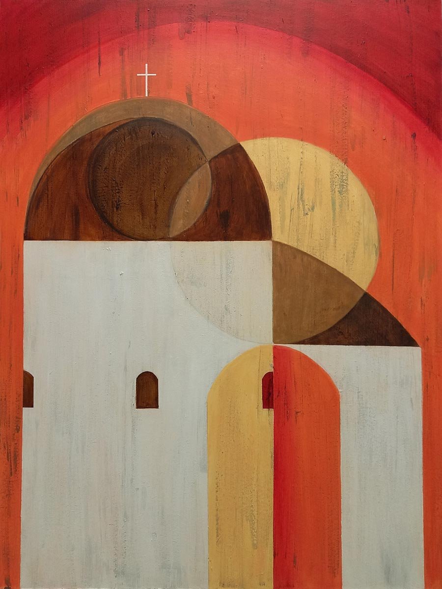 Experience a fresh interpretation of the Öskü Rotunda, Hungary’s unique round church, through the lens of modern abstract art.