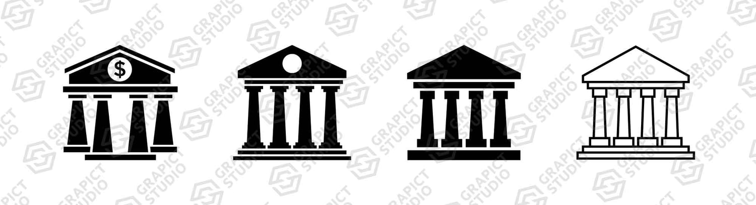 Bank building with pillar or column, architecture roman building. Bank icon set. Vector graphic illustration. Suitable for website design, logo, app, template, and user interface