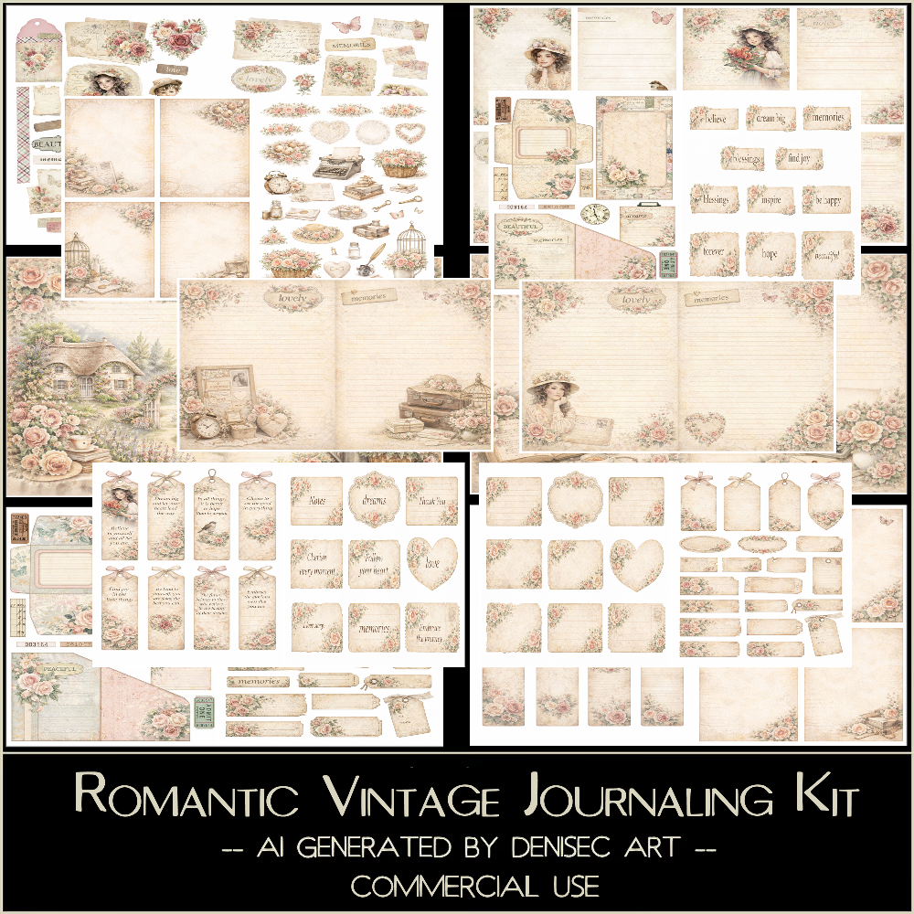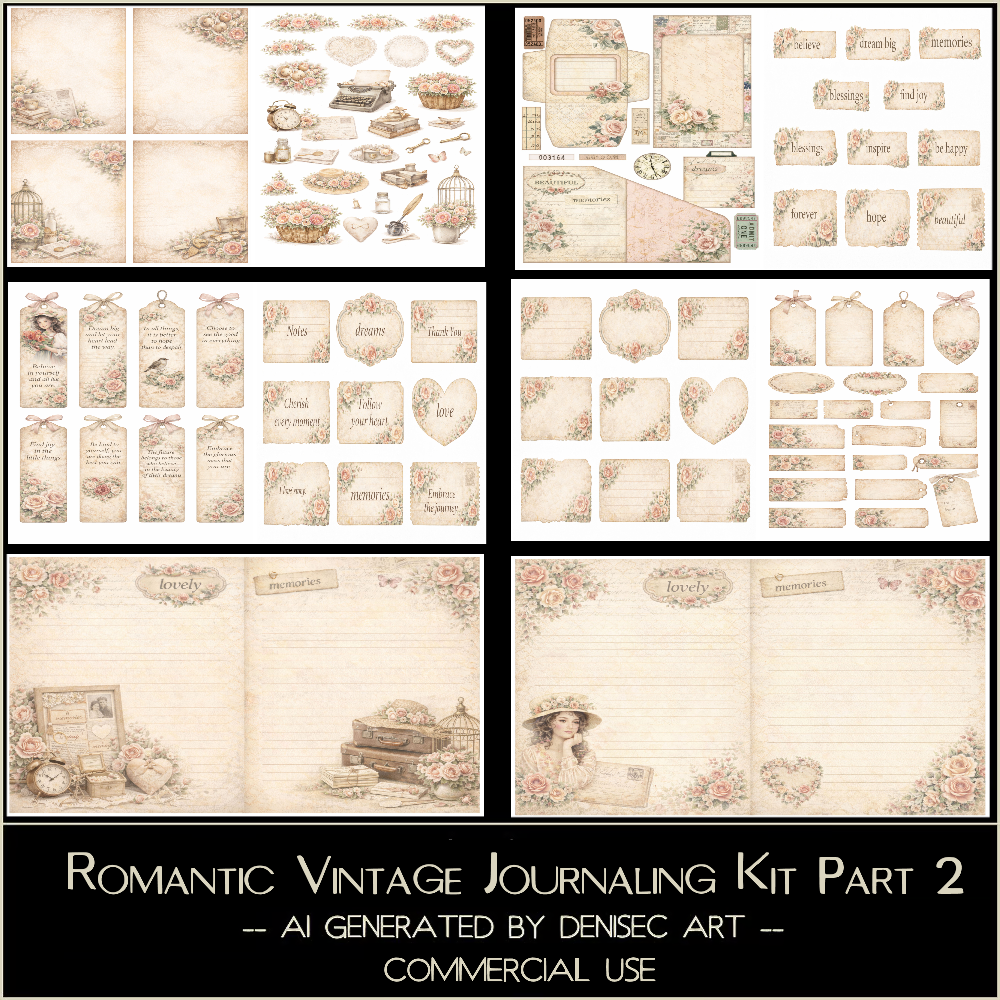 12 Times a a4 Sheet (3508 x 2480) with, Backs, Elements, Journal Papers, Stamps, Tags and Labels