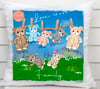 Hand drawn cuddly and cute teddy family. 2-7 family members for you to personalise, On a bright watercolour background