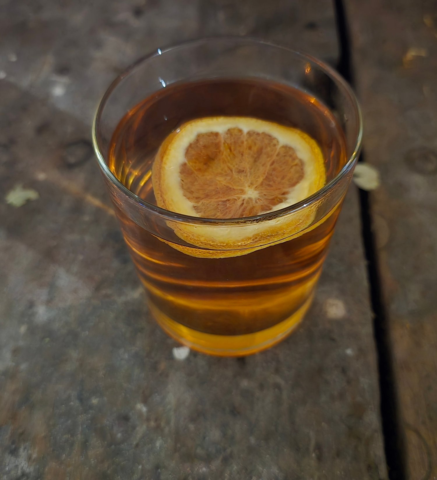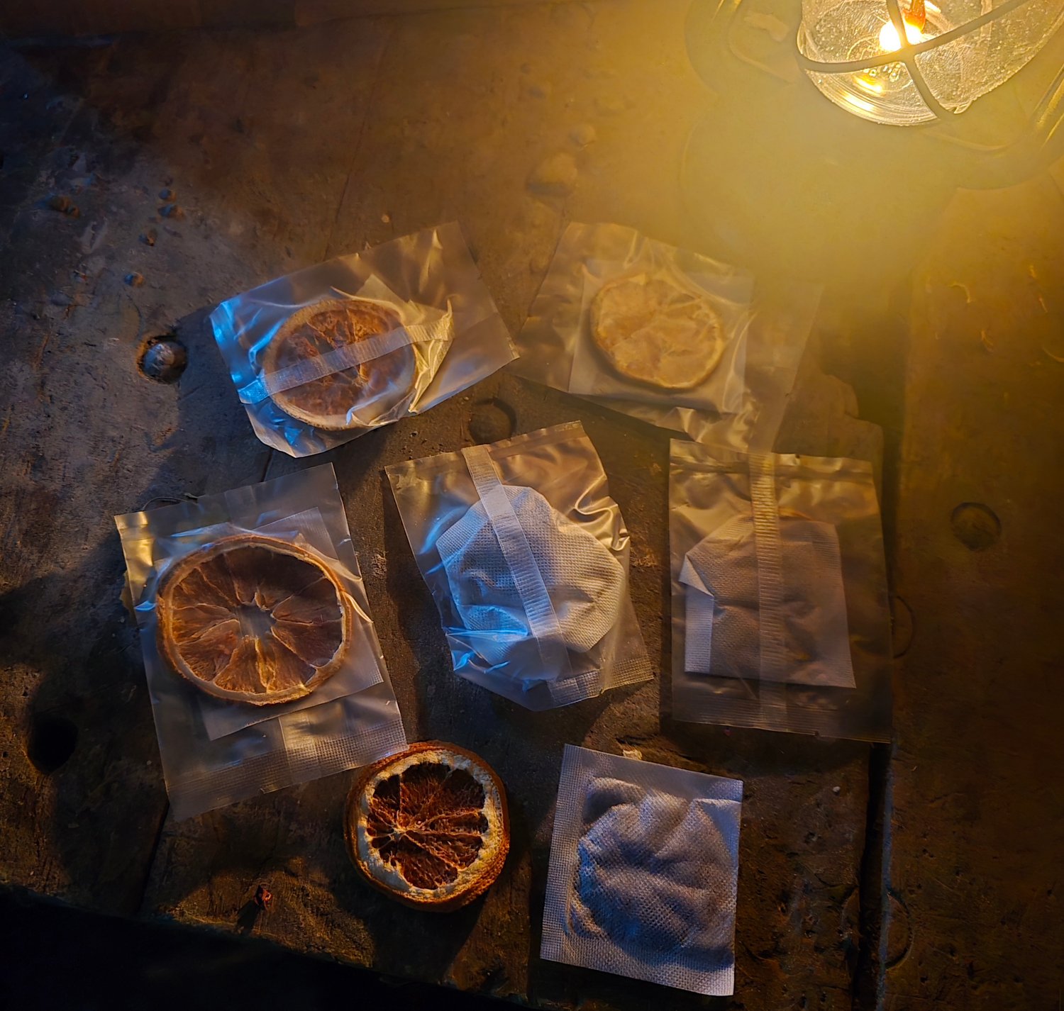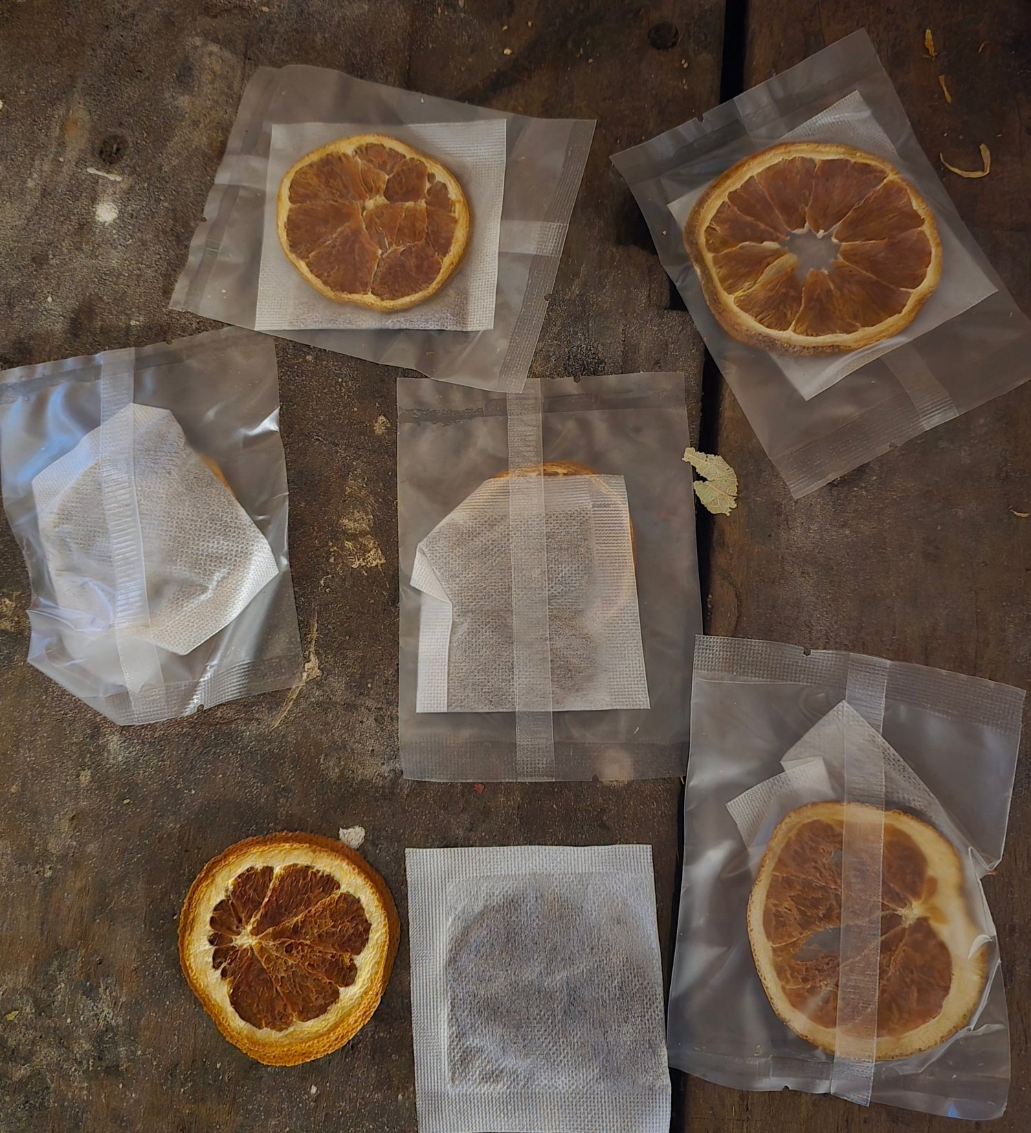 Each tea bag holds a full dried orange slice alongside smooth rooibos tea… simple, real, and meant to be steeped slow.