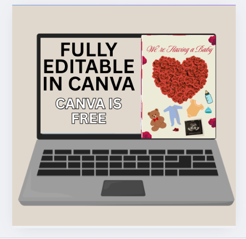 Valentines Pregnancy Announcement: Floral Baby Reveal, Editable Canva Template (Digital Download