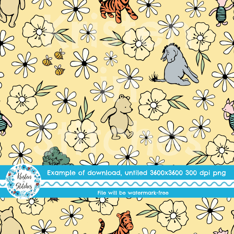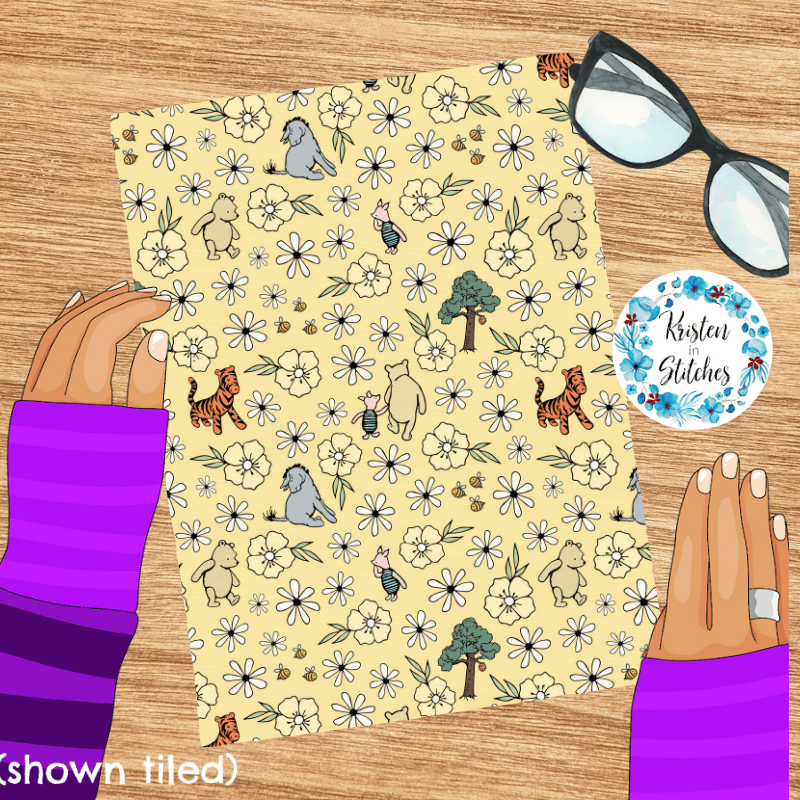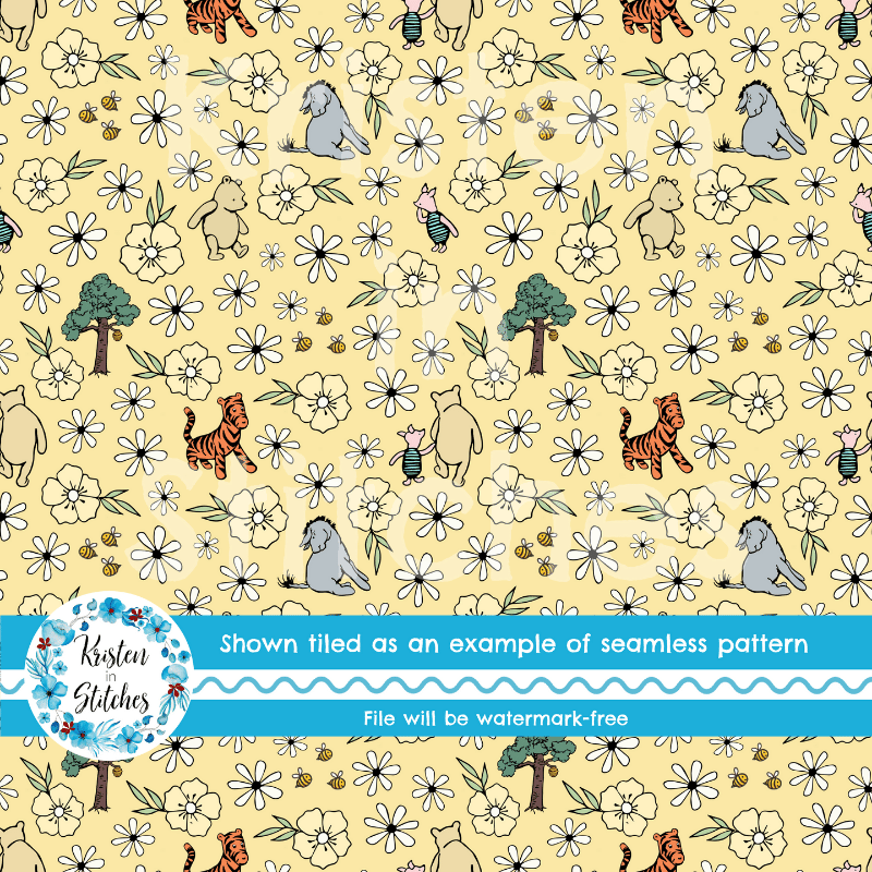 Classic Winnie the Pooh and Friends Storybook Sketches Nursery Seamless Pattern Soft Yellow