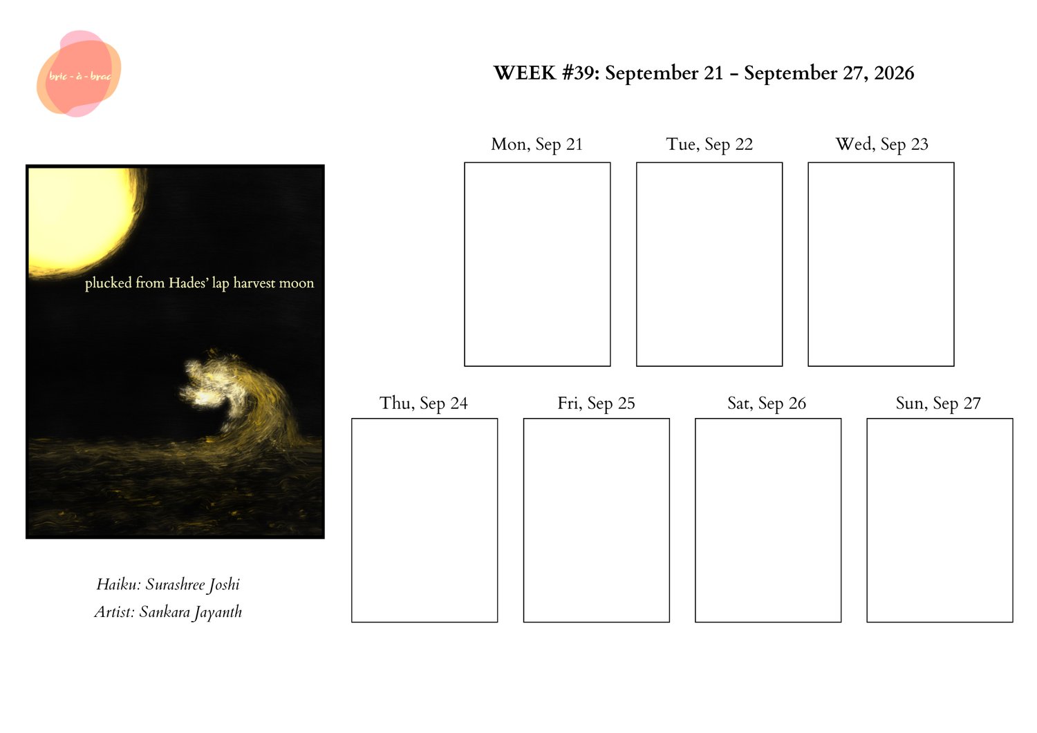 Our 2026 Haikai Digital Planner is here! Four artists, 29 poets, 53 seasonal haiku. The result? 53 scrumptious haiga for your printable weekly planner. Ready to download yours?