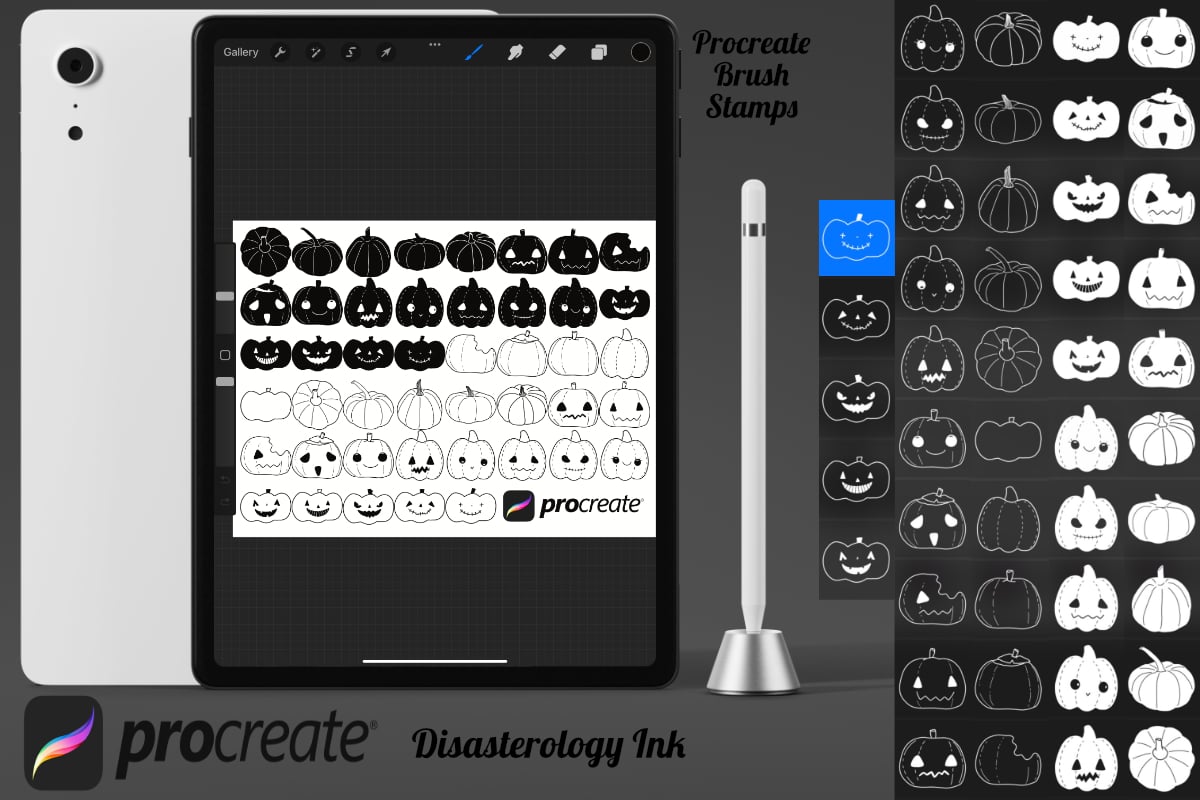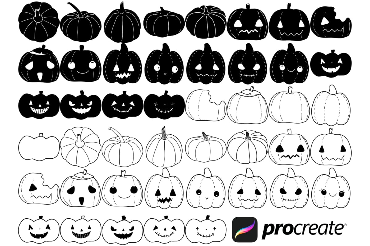 Halloween Pumpkin Procreate Brush Stamps Set 4, 45 Spooky Pumpkin Stamps