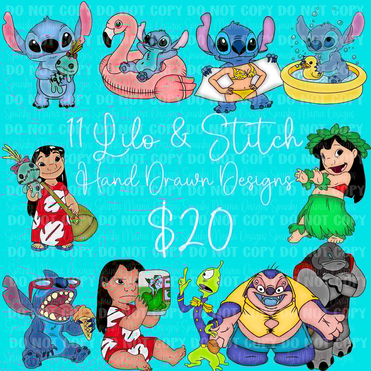 11 Lilo & Stitch Hand Drawn PNG Clipart Bundle