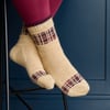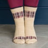 All butter shortbread. There's nothing quite like a hot brew with a piece of shortbread on a winter's eve. All Butter is a homage to this warm cosy treat with fork dimple shortbread texture and adorned with tartan ribbons. Giddy Aunt Yarns have created this beautiful shortbread and tartan sets in their Highland 4 ply base.