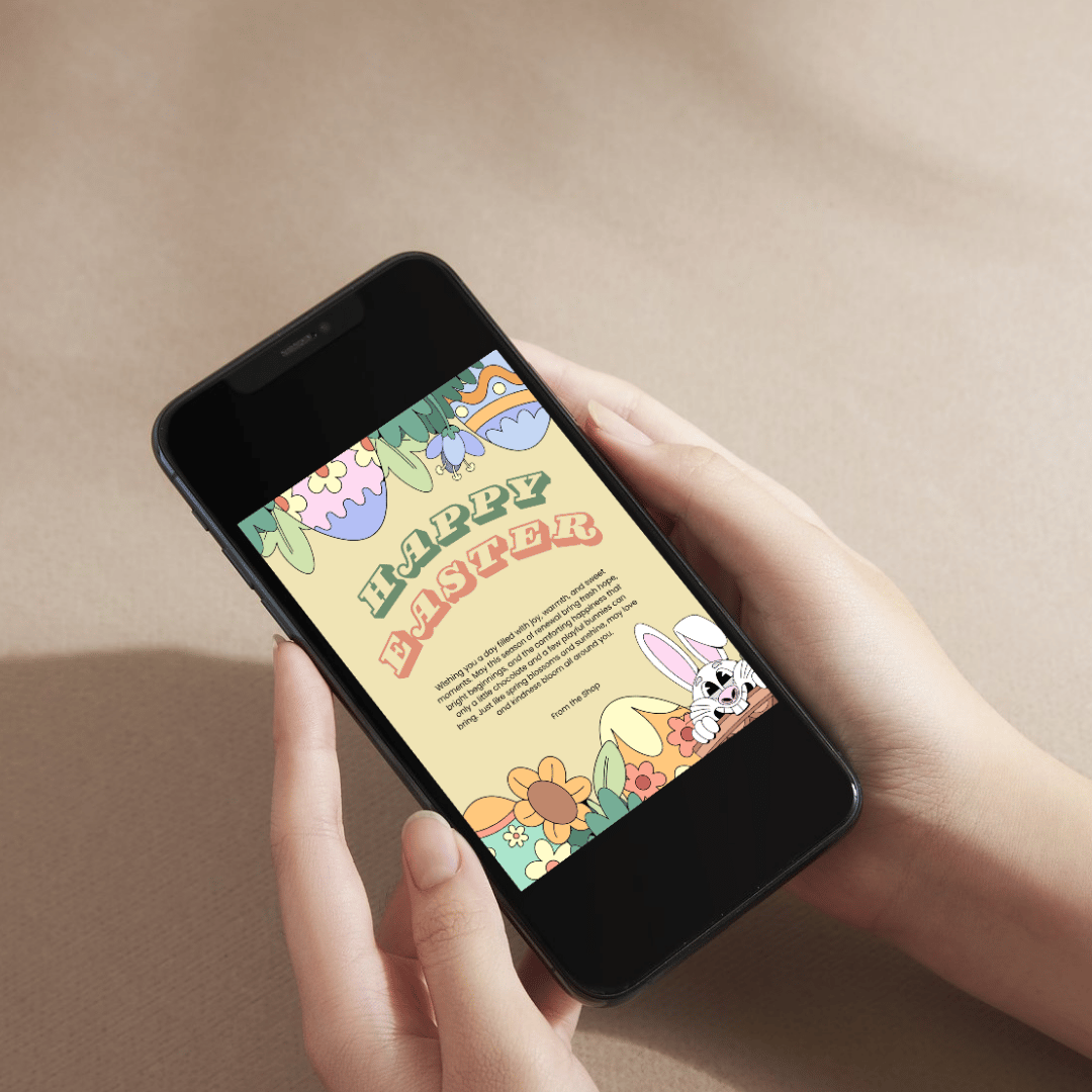 This printable and downloadable invitation is fully customizable with your text — simply edit it in Canva, print it at home, or send as a message to your loved ones. Whether you're planning an Easter egg hunt or