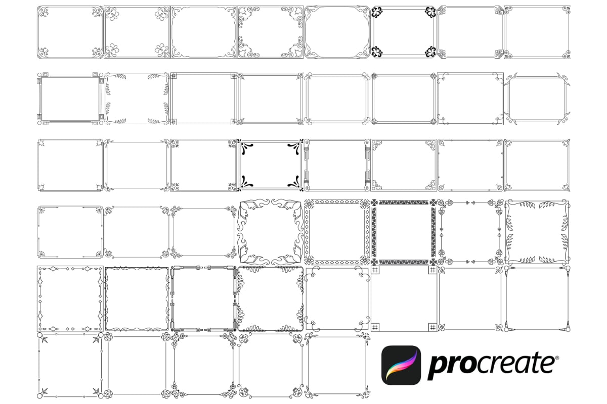 Vintage Ornate Frames Set 2 Procreate Brush Stamps, 45 Vintage Frames