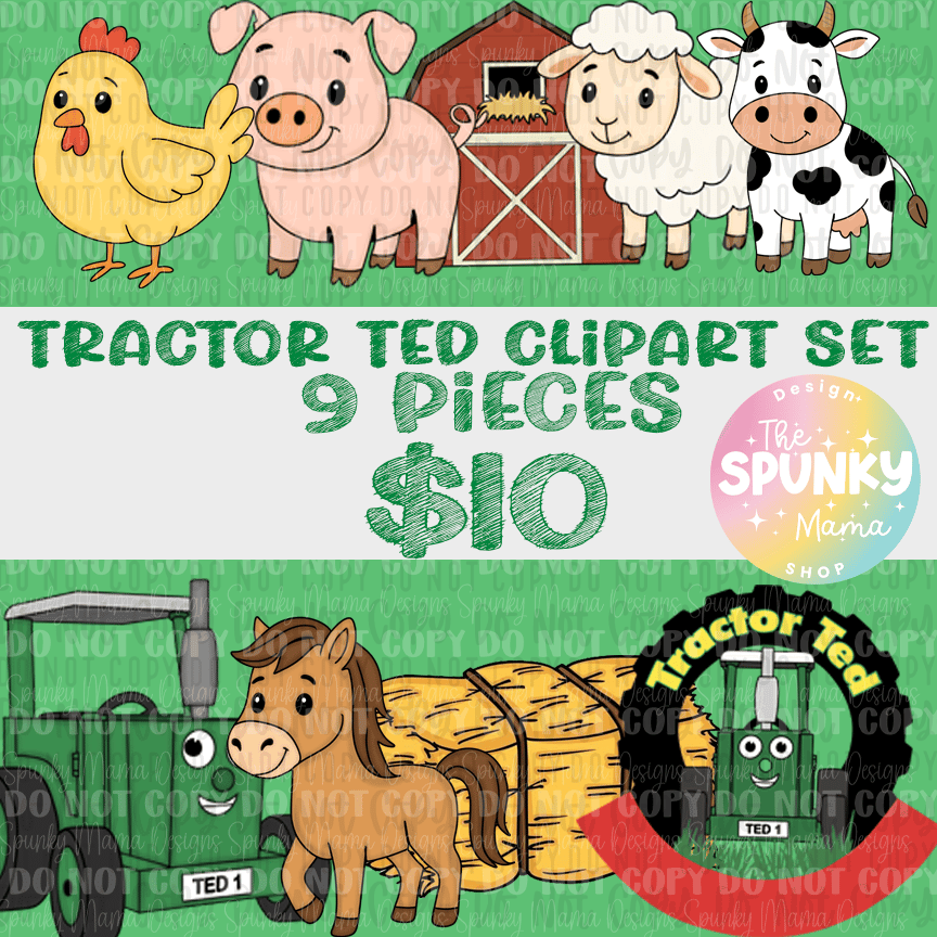 Tractor Ted Digital PNG Clipart Set