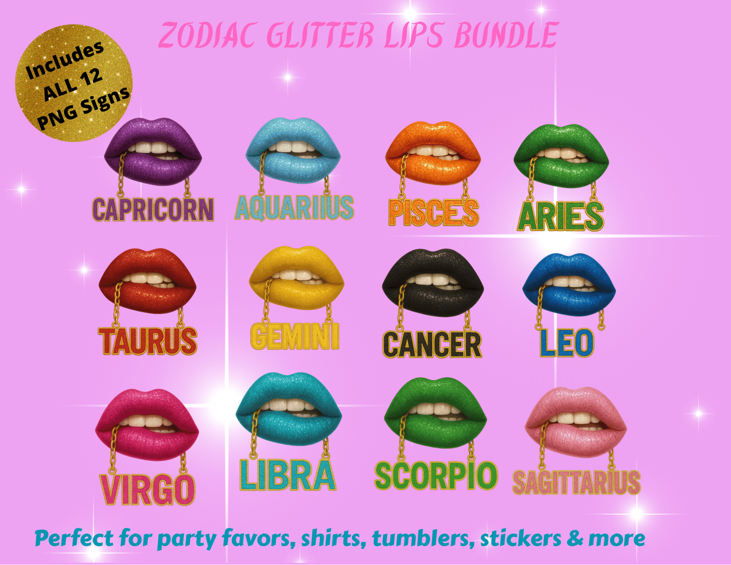 💋 Zodiac Glitter Lips Bundle – All 12 Signs + Bonus Prompt