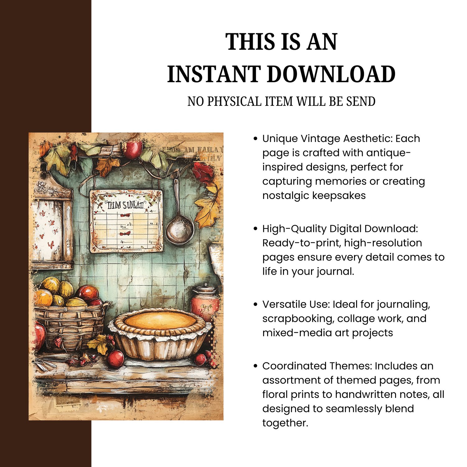 Retro Farmhouse Kitchen Junk Journal Pages | Digital Download in JPG and PDF