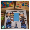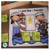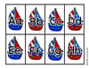 Place the alphabet ship cards upside on the mat. Flip over a card. Find the two lighthouse cards with the matching sounds. Place them on the mat. Repeat.