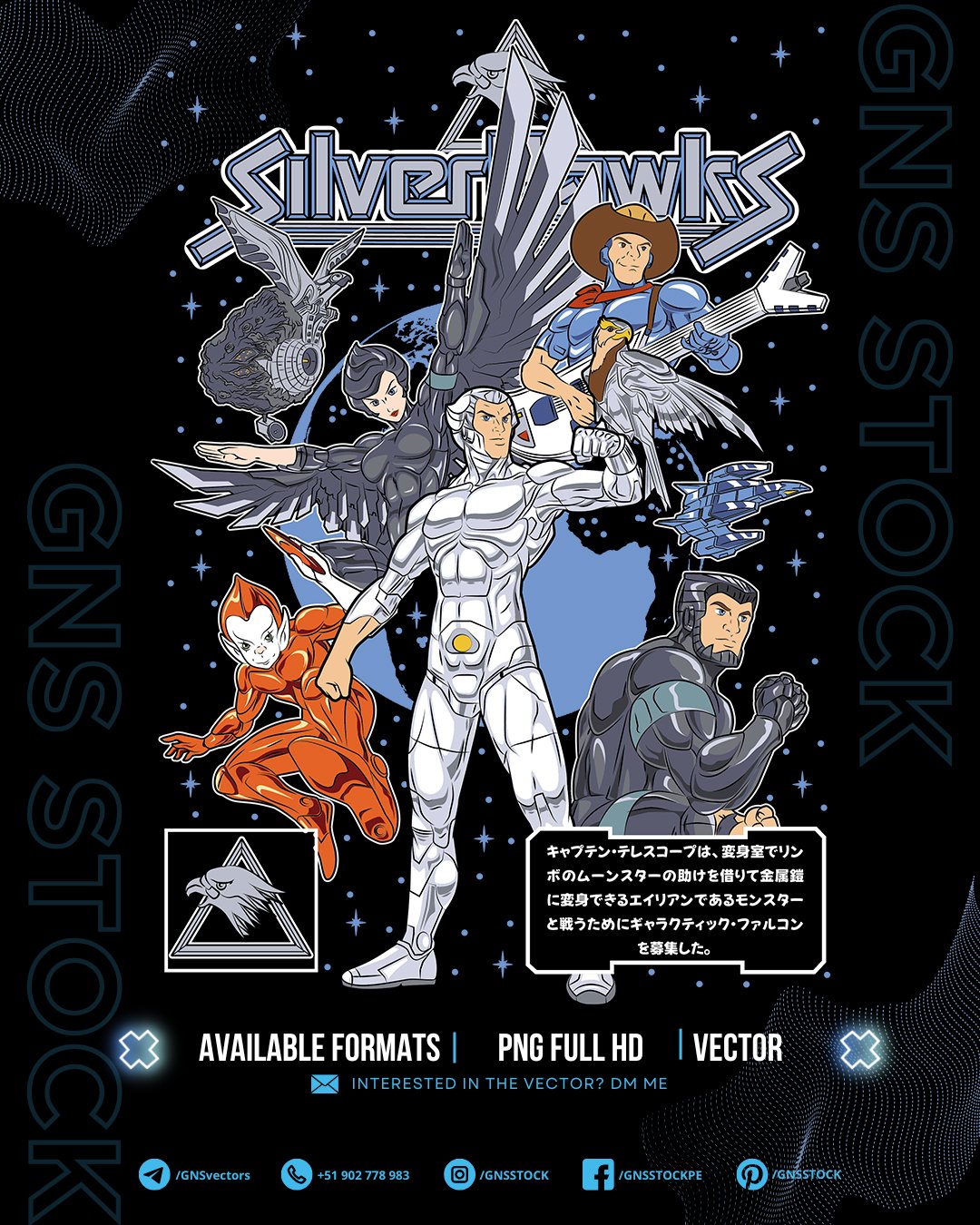 Anime Vector – Silverhawks | Classic Animated Series | Design for DTF, Sublimation, T-Shirts | Files: CDR, PDF, PNG, SVG