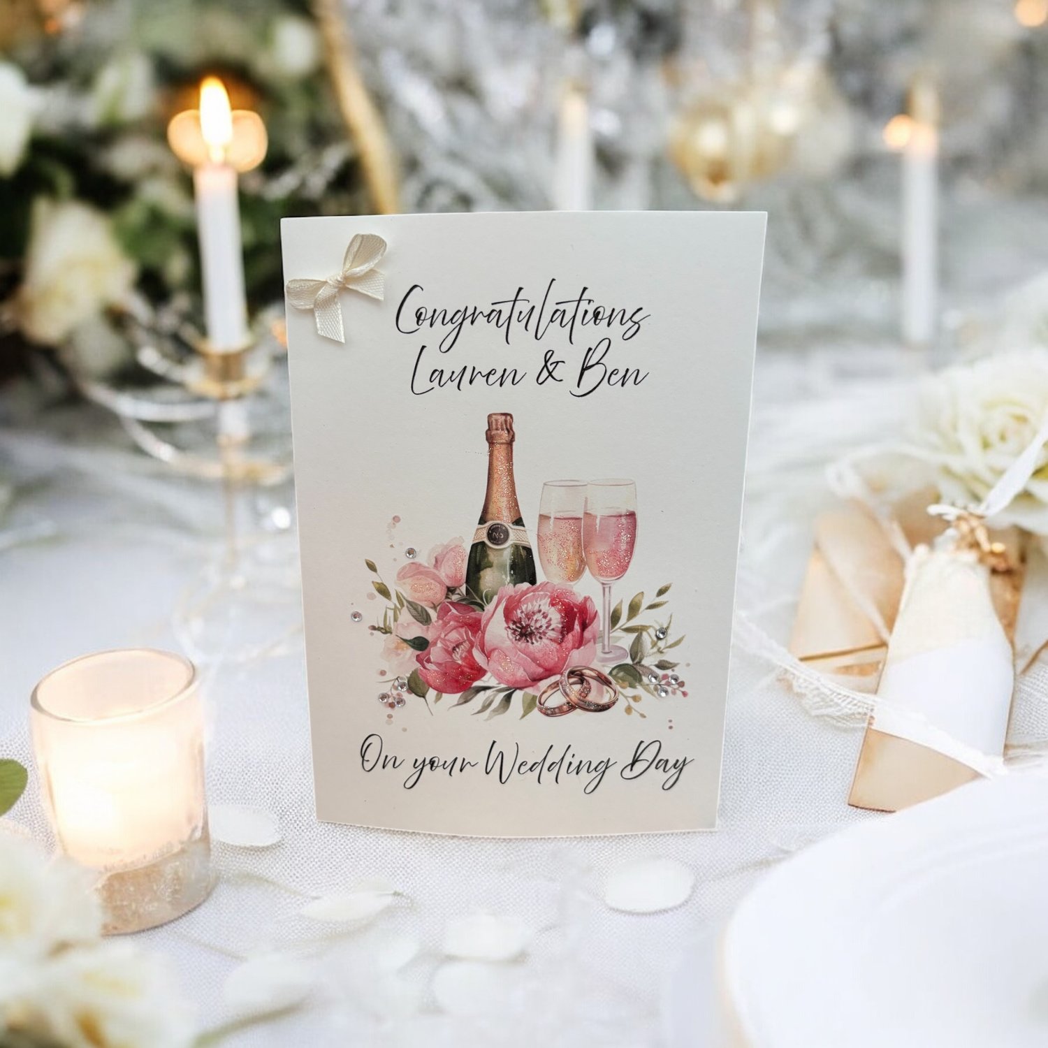 Each card is made with only the finest quality recycled materials and printed on 180gsm card stock, embellished with glitter, bows and anything to enhance the product. These additions make every order bespoke just for you and may differ slightly for one in the picture - the image will remain the same.