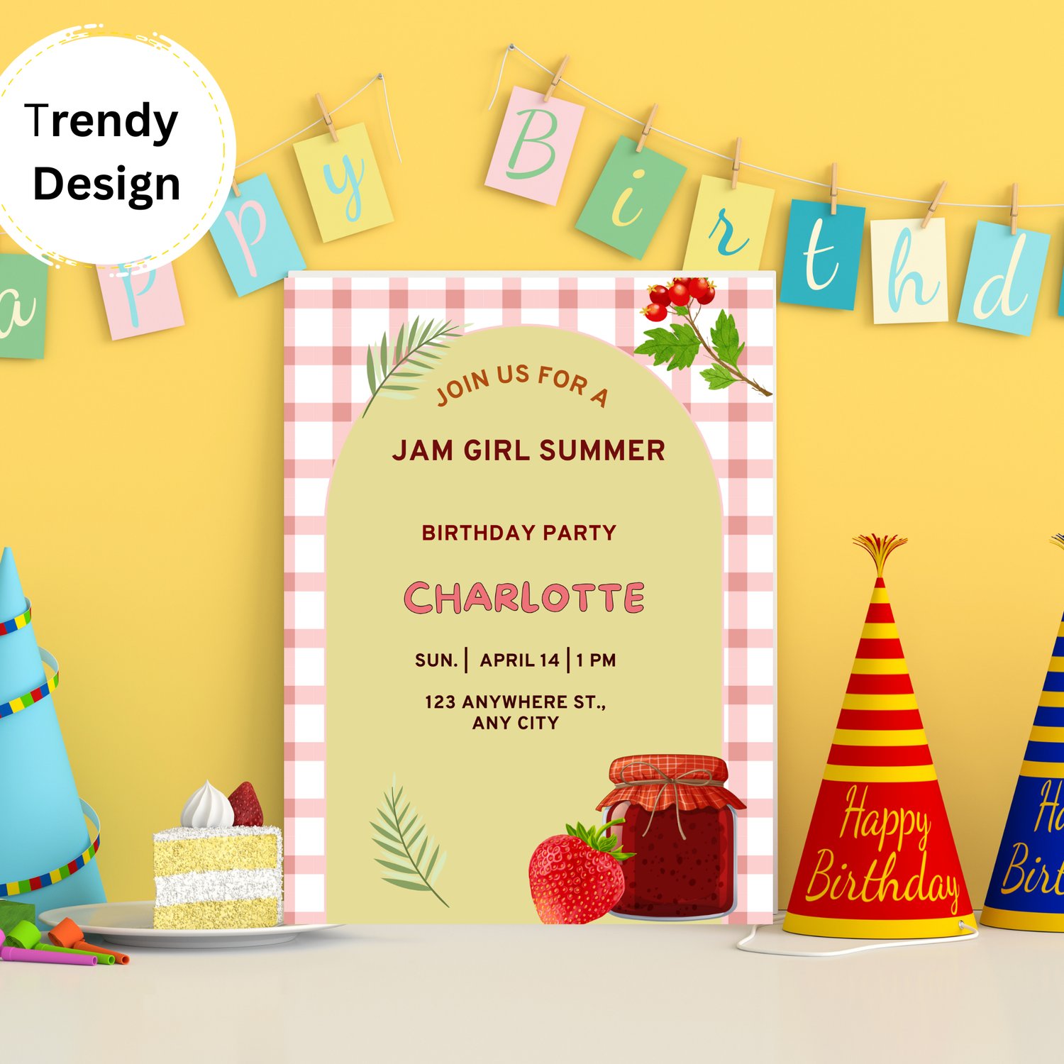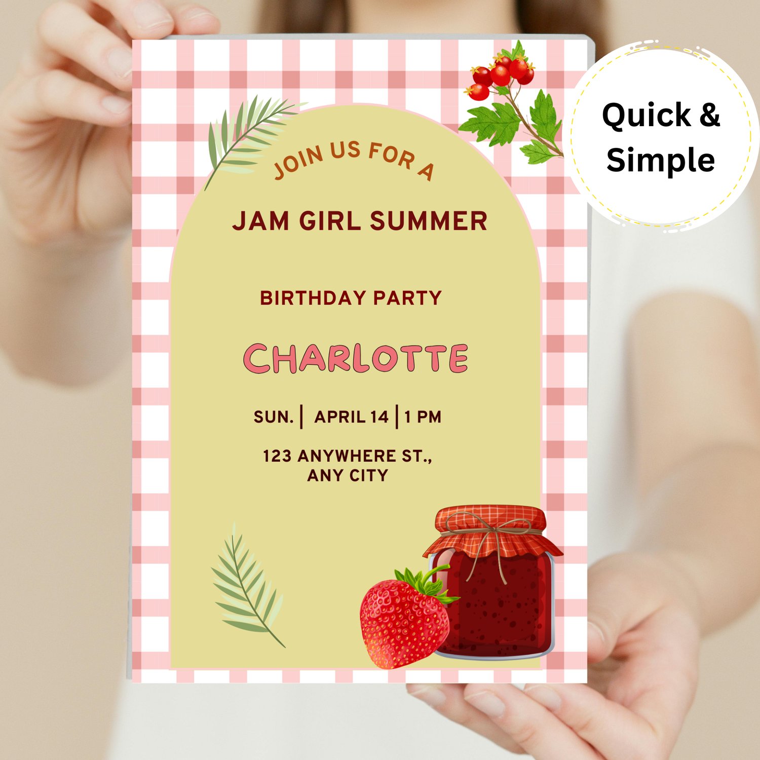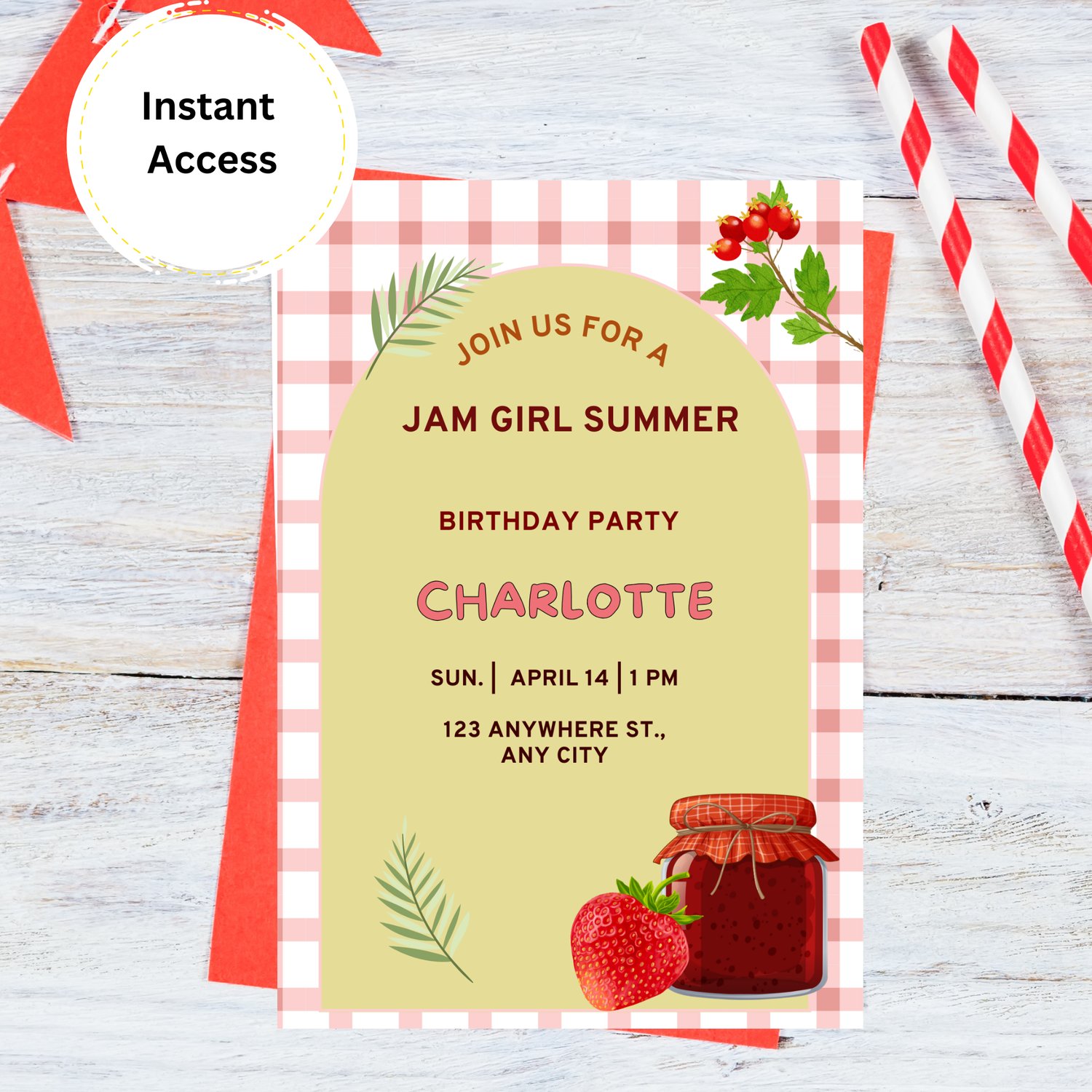 Jam Girl Summer Birthday Invitation Template Pack – Cute Picnic & Strawberry Party Invite