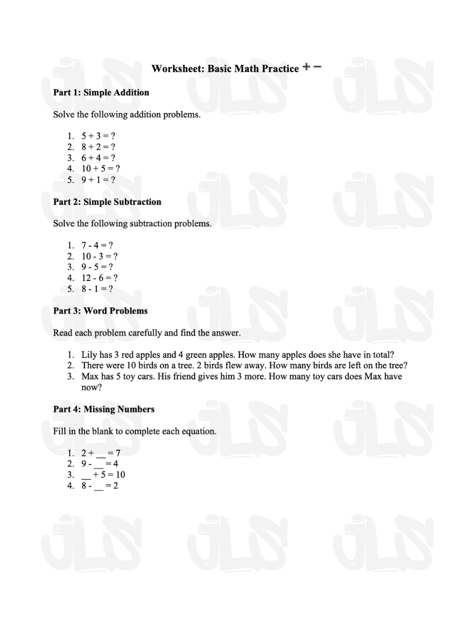 Worksheet: Basic Math Practice ➕➖