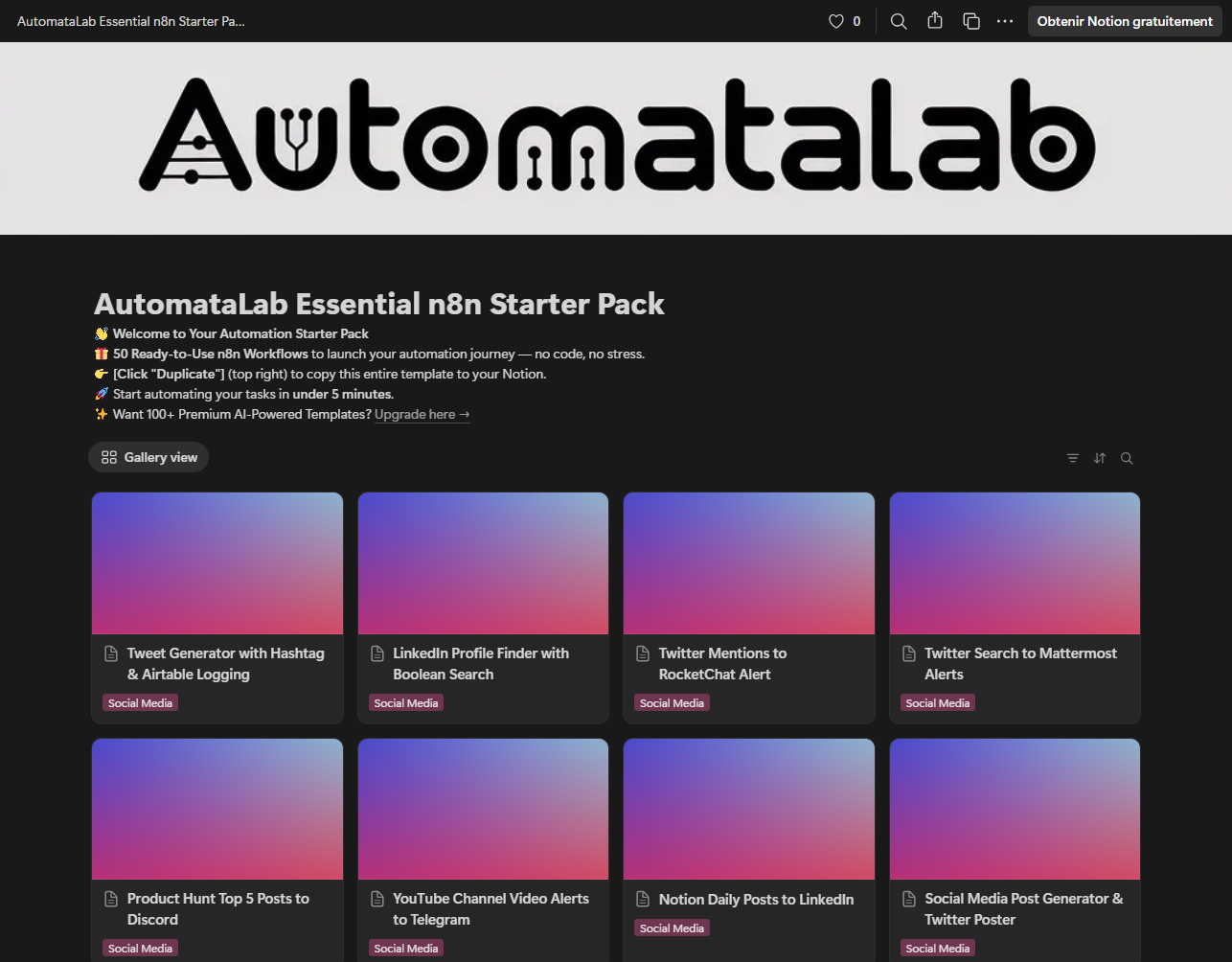 Meet AutomataLab — a sleek, beginner-friendly library of 50 powerful n8n workflows that just work.