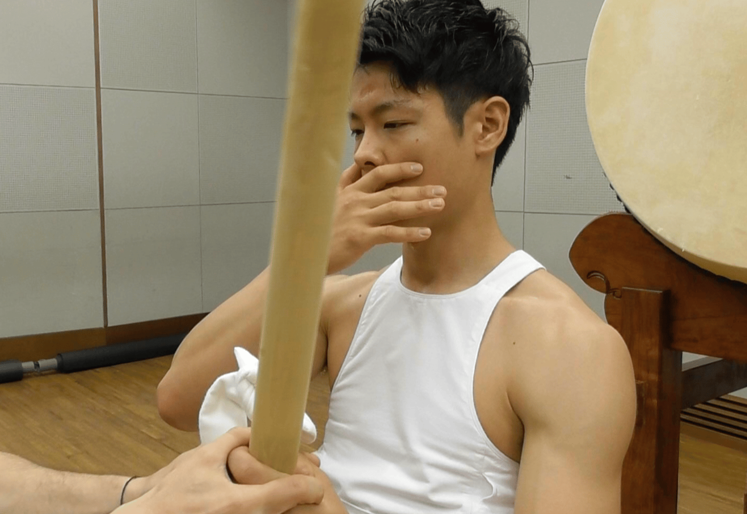 Final part of Kamiya session. He is frozen while beating a huge drum, then rotated around and played while frozen. Some face and hands play.
