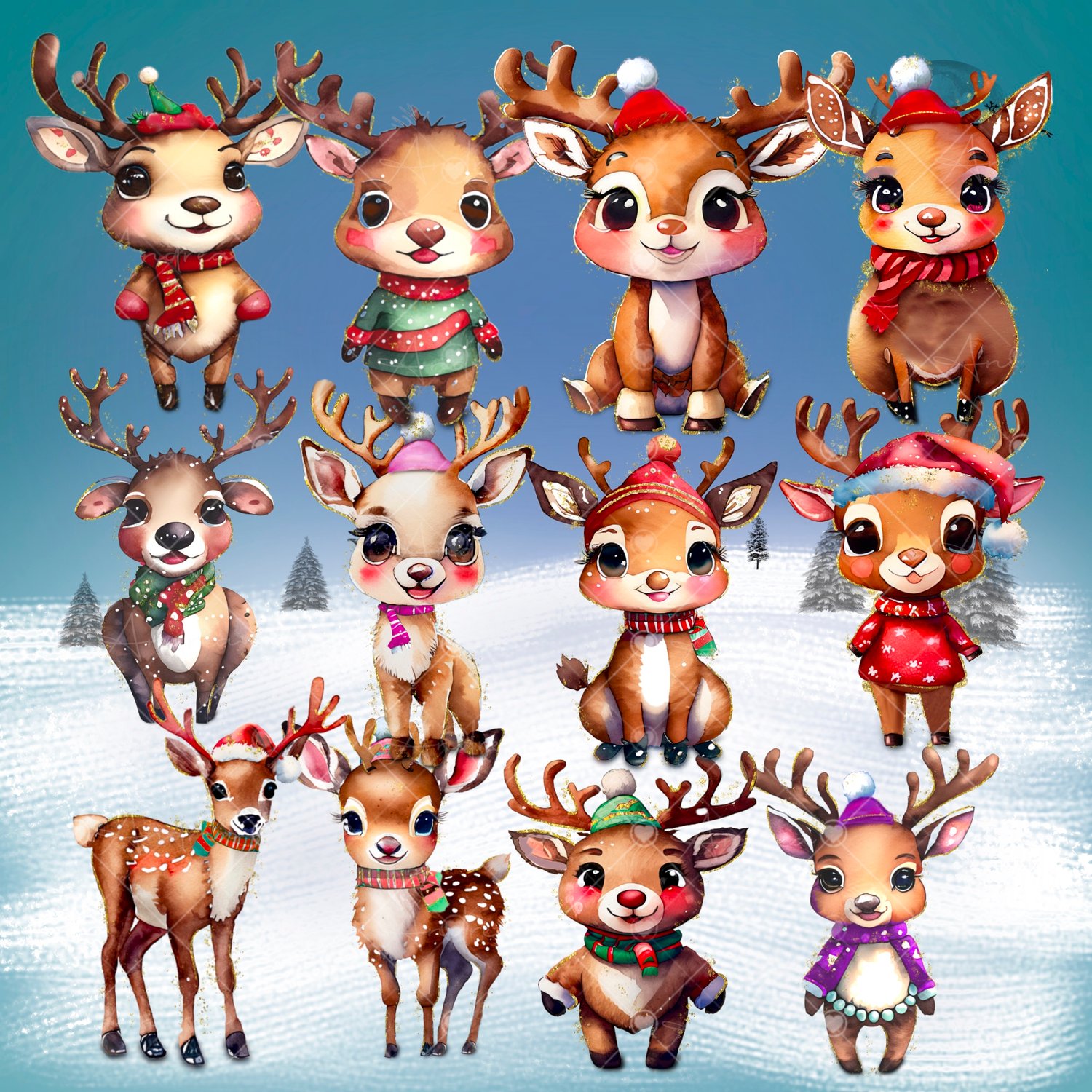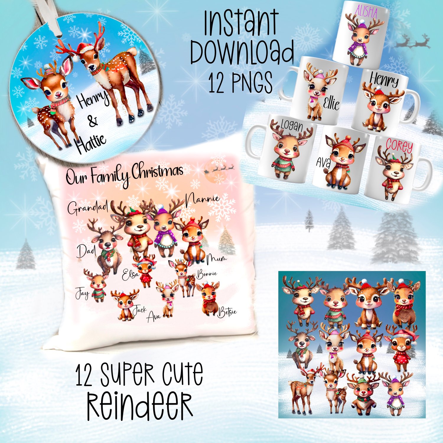 Reindeer family clipart. 12 individual cute reindeer. Make up your own family