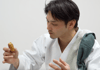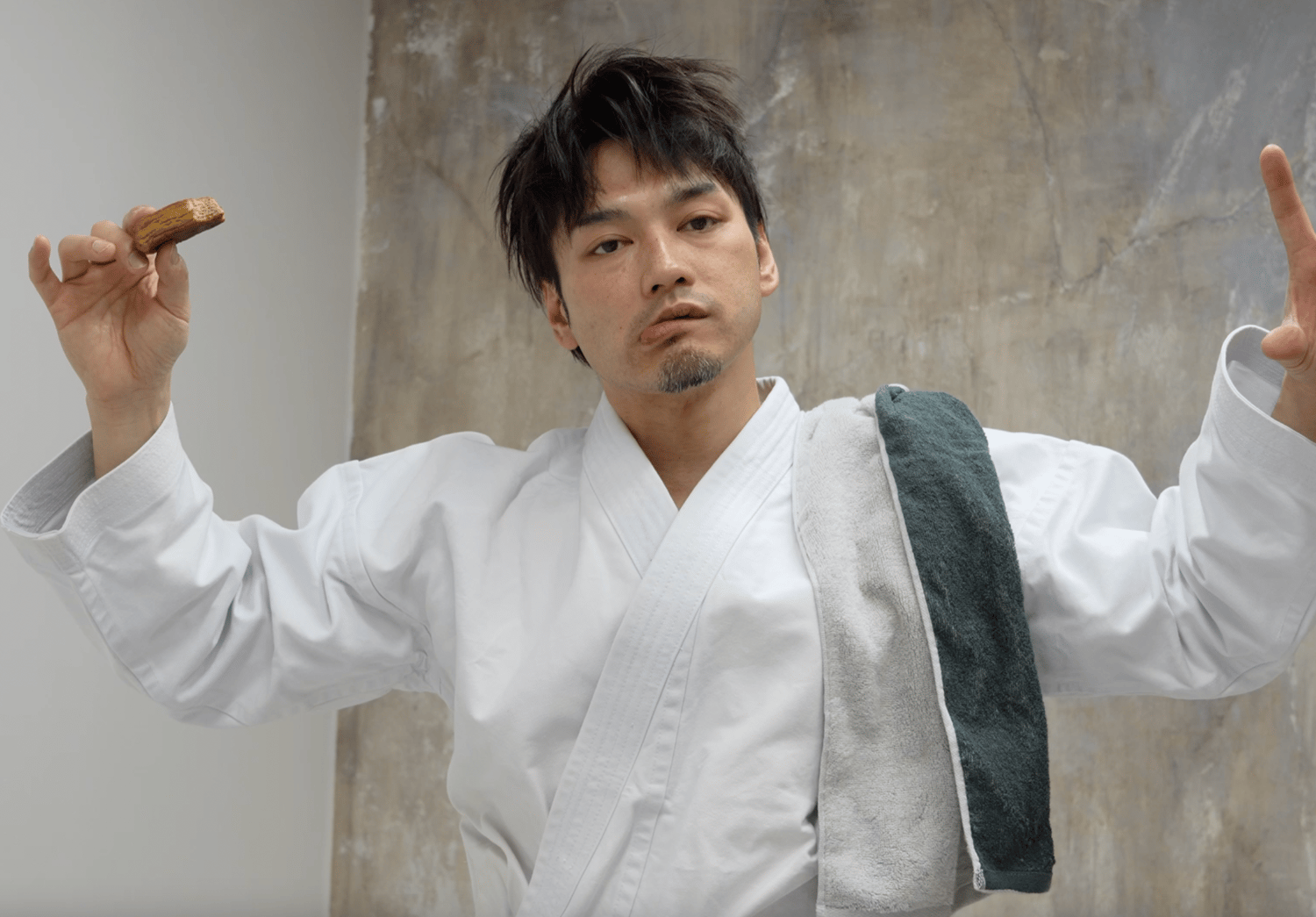 M.T is now taking a break from Karate session and eating bread, when he is turned into a robot. I then switch him off and play with his face. Finally I freeze him while training and then unfreeze him slowly.