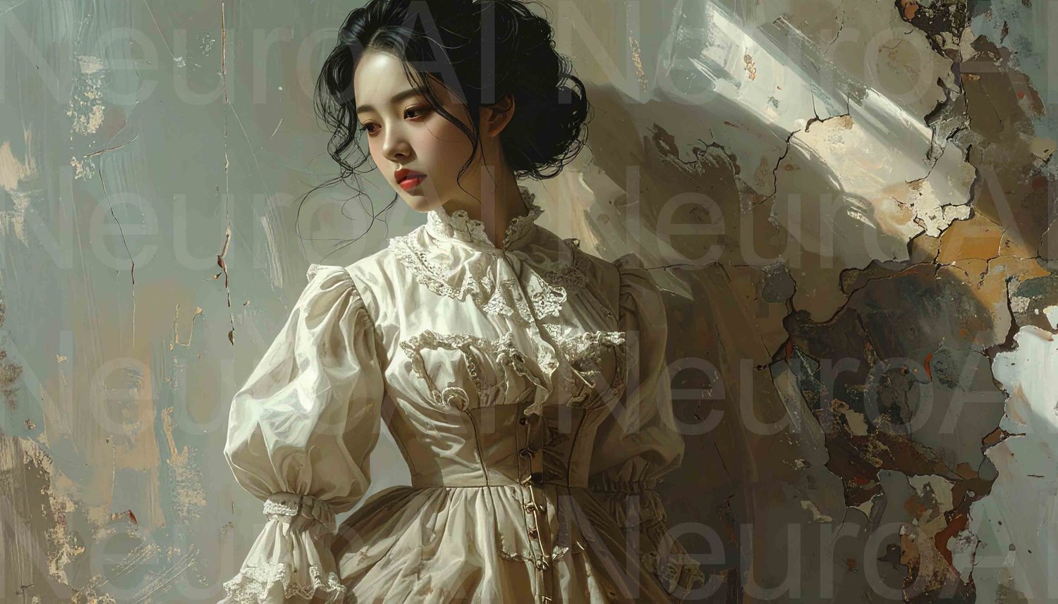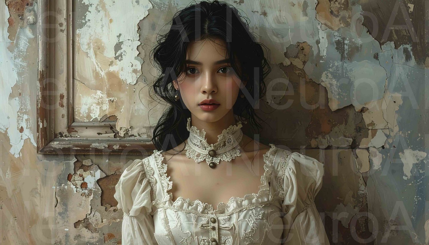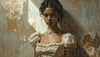 Elegant young woman in vintage dress thinking