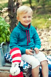 Red Riding Hood Yarns Belle 8ply Superwash (100% wool; 434m/475y per 200g); colorways: MC - Thing 1 & Thing 2: 1 (2, 2, 2, 2) skeins; CC1 – Fun-in-a-box: 1 skein.