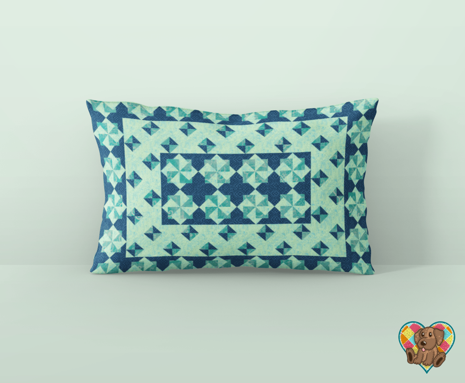 Pillow sham quilt front is 20" X 26.5" Blocks are traditional pieced blocks.