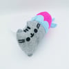Jucarie Pisica Sirena din fetru gri Pusheen Cat Mermaid, realizata manual.