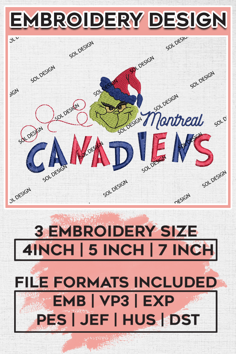 Christmas Grinch x Montreal Canadiens NHL Team Embroidery Designs, Grinch Embroidery Files, NHL Canadiens Hockey Team Logo Embroidery, Merry Christmas Machine Embroidery Design, Digital Download