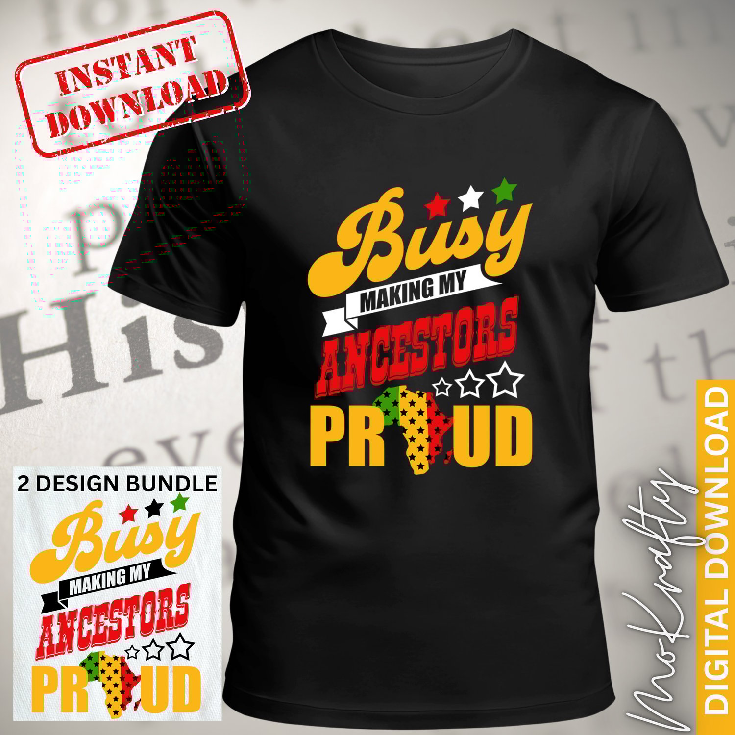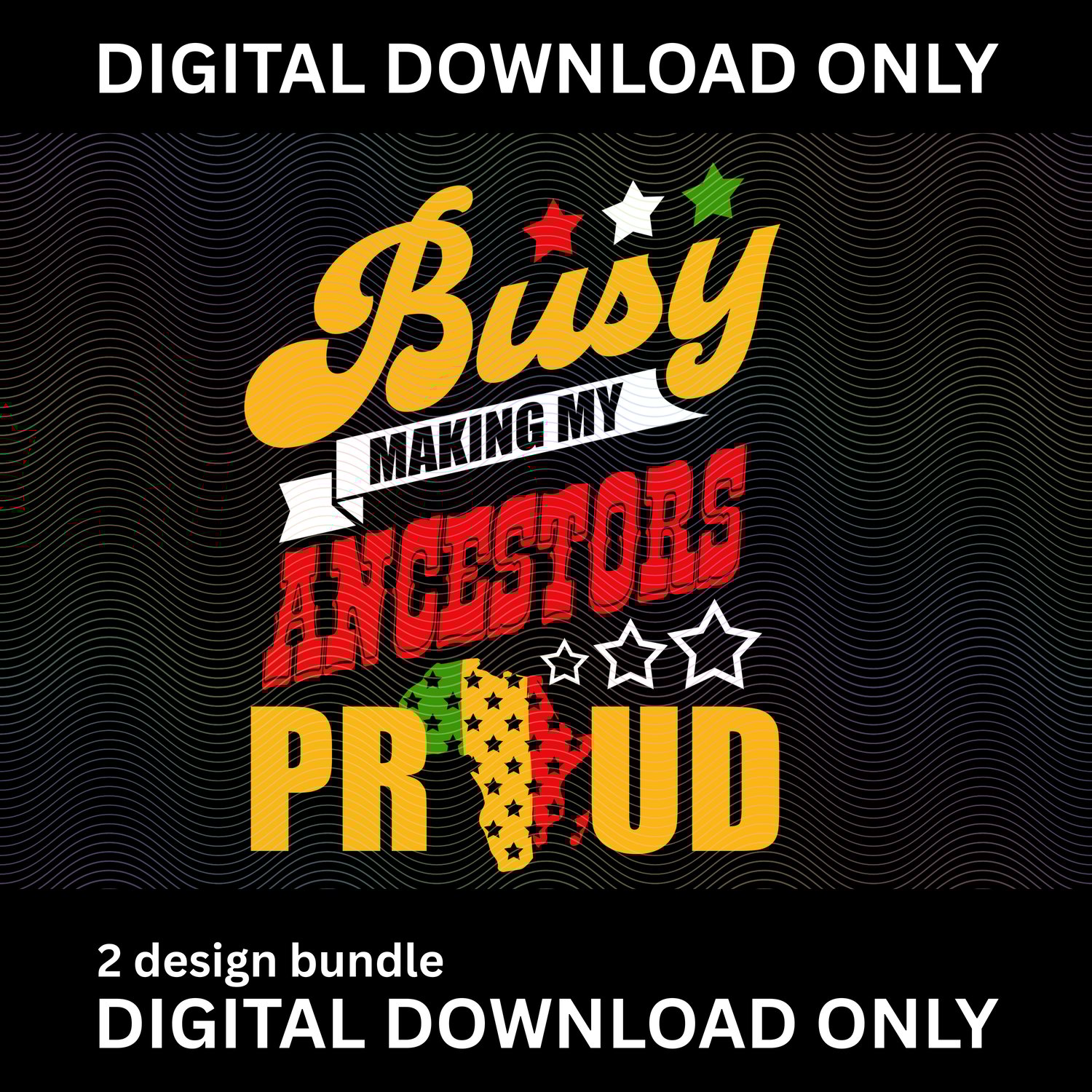 Make a bold statement with this powerful Busy Making My Ancestors Proud design bundle. This motivational, culture-forward design is perfect for shirts, hoodies, and statement apparel.